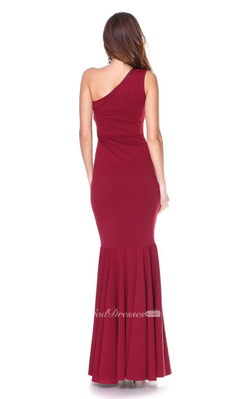 Crystal One Shoulder Jersey Mermaid Long Dress Pleated Skirt