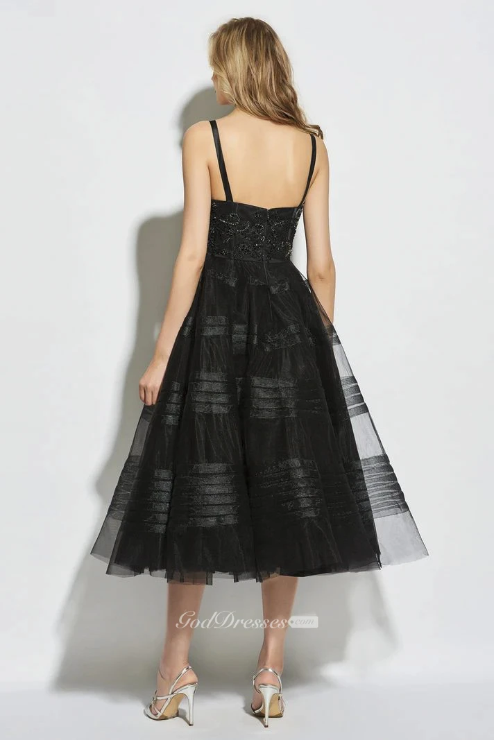 Cute A-line Tea-length Straps Vintage Boned Dress With Sweetheart Neckline And Beading