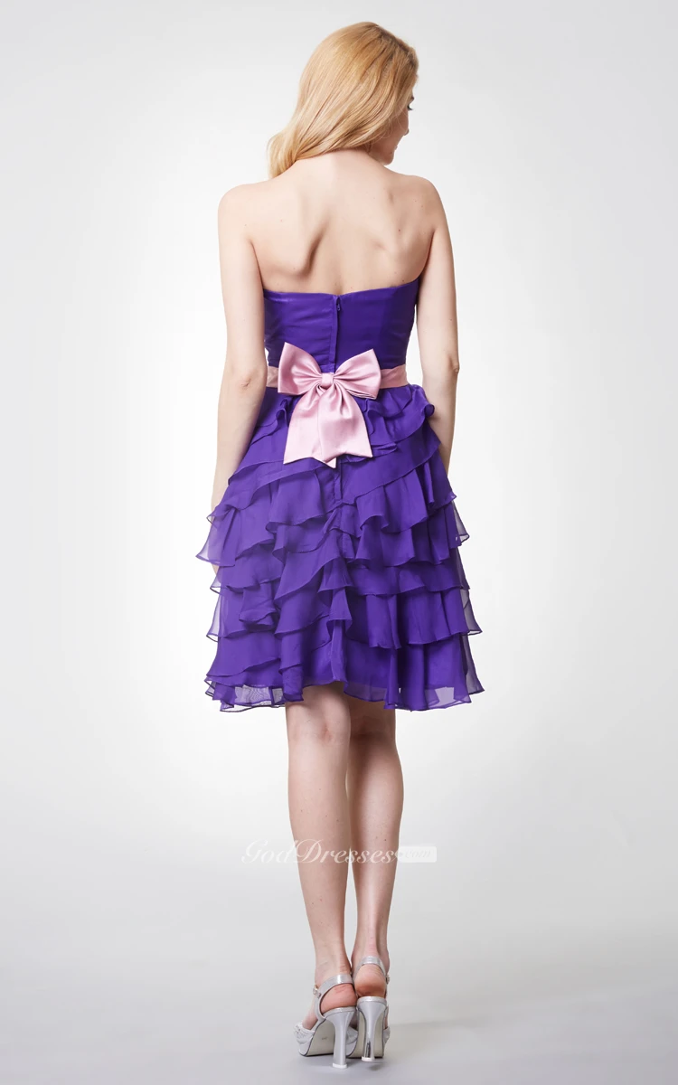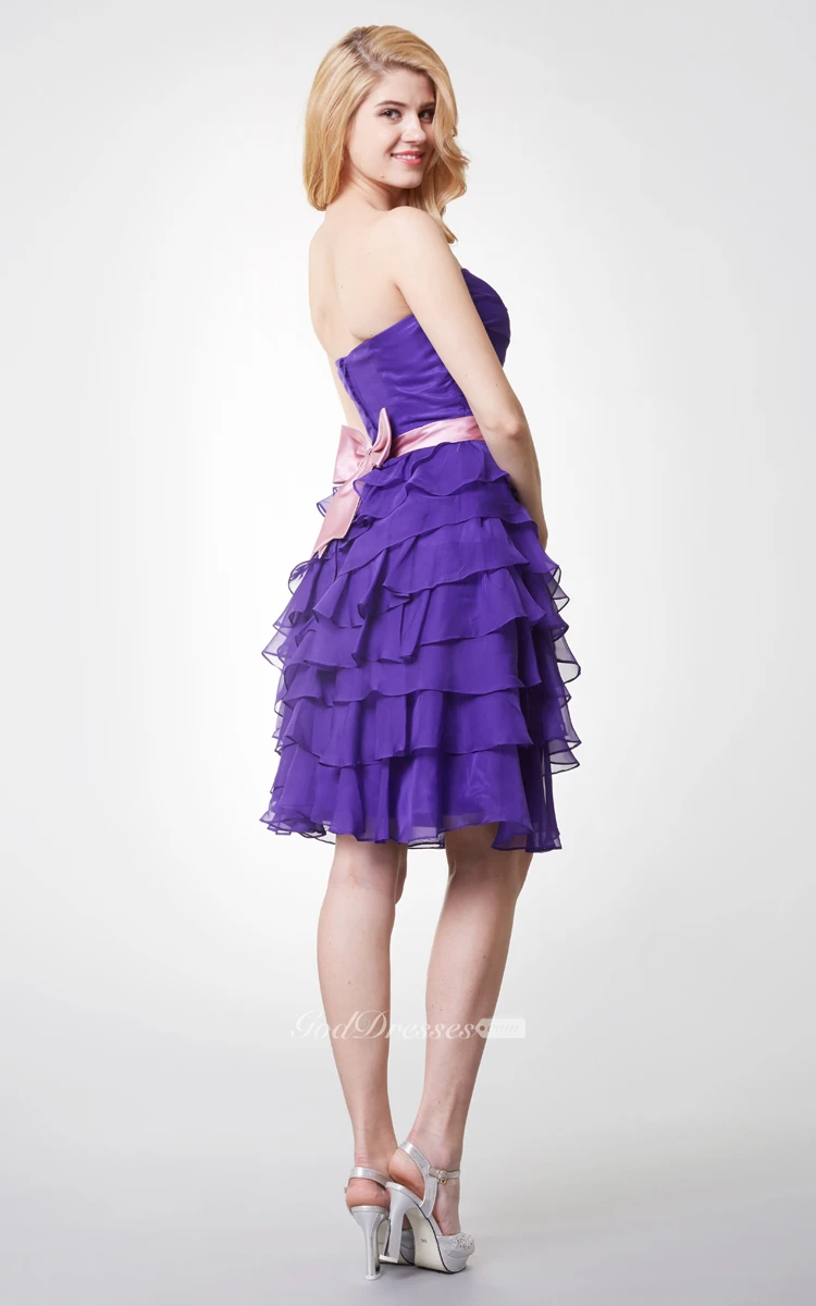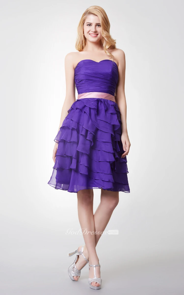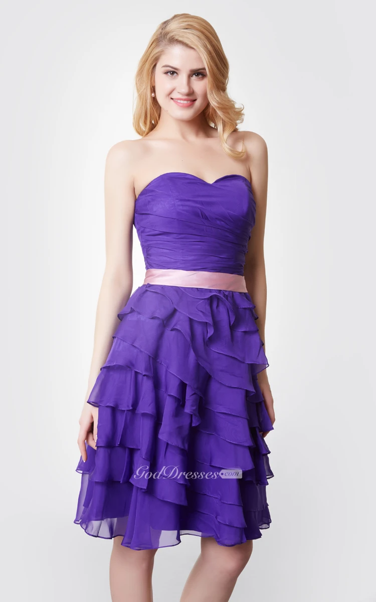 Cute Sleeveless Ruched Tiered Short Chiffon Dress With Sash