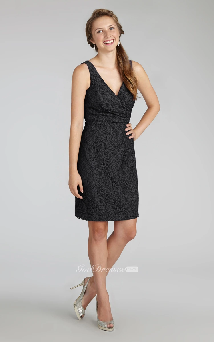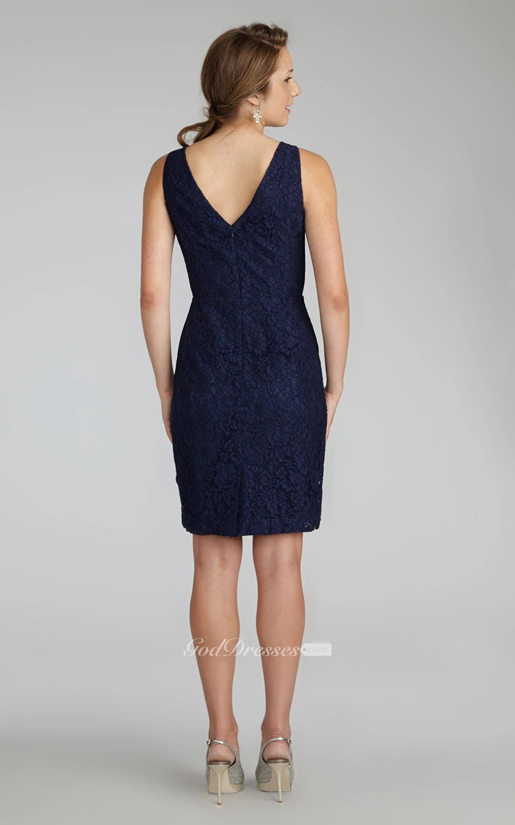 Dainty Sleeveless Mini Lace Dress with V-neck and V-neck