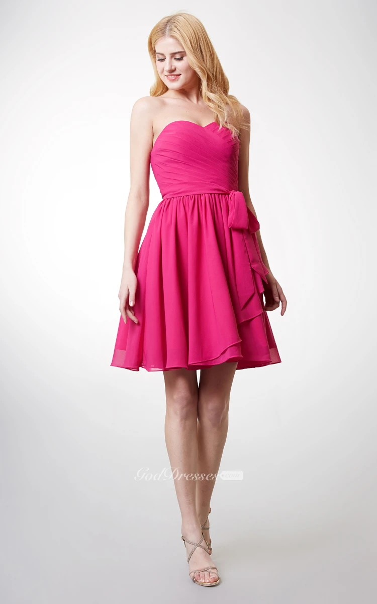 Dashing Strapless Sweetheart Top-Pleated Layered Chiffon Dress With Belt