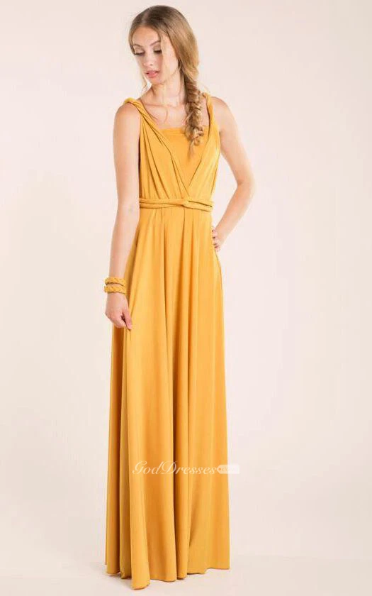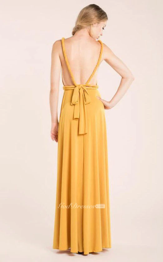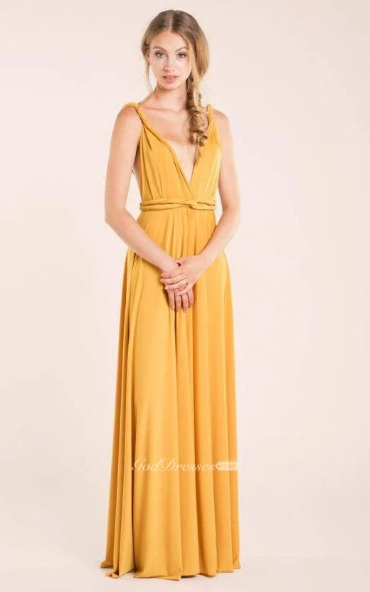 Deep-v Neck Backless A-line Jersey Long Dress With Sash