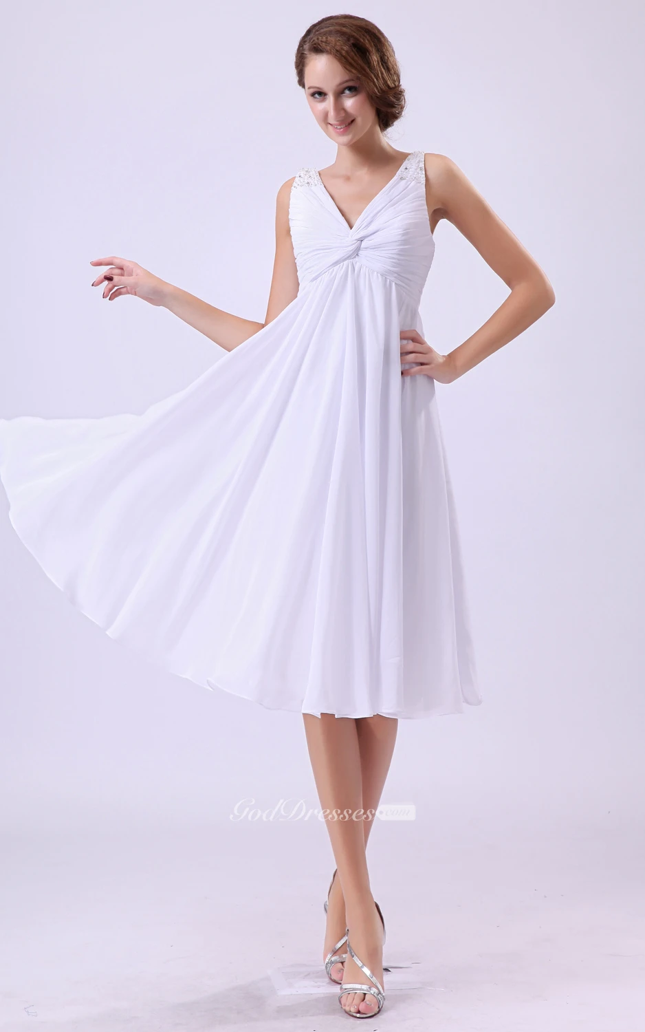 Deep V-Neck Empire Short Maternity Dress With Ruching