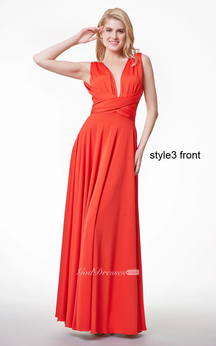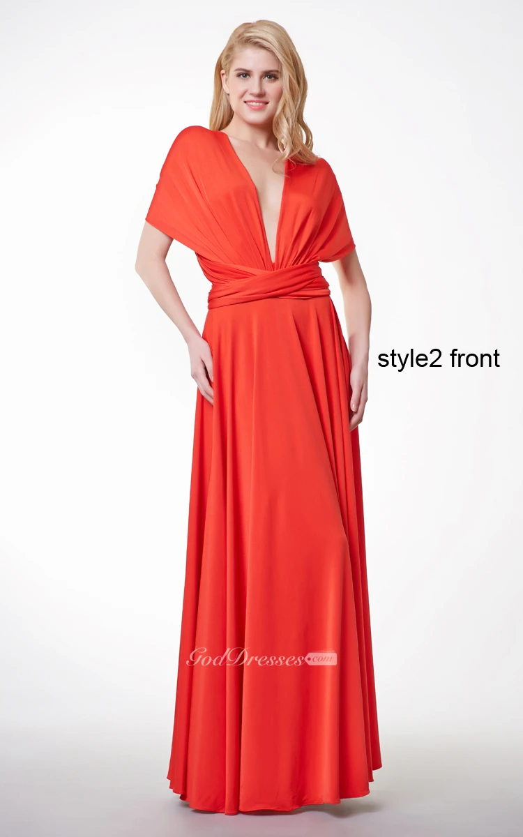 Deep V Neck Ruched Long Jersey Dress With Changeable Criss Cross Straps