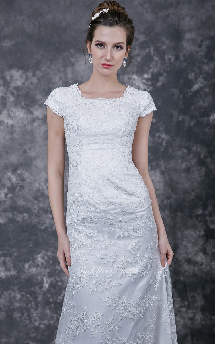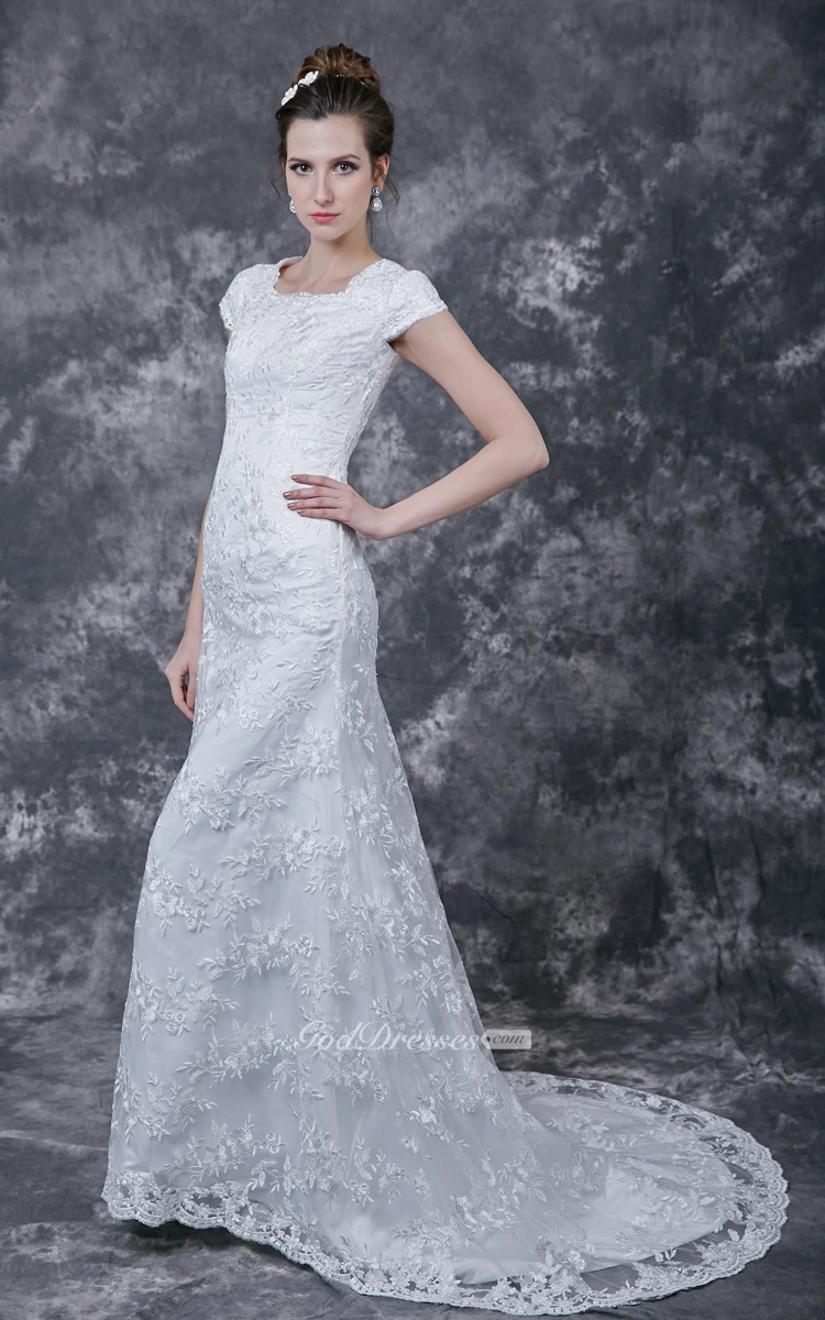 Delicate Fitted A-line Lace Applique and English Net Wedding Gown