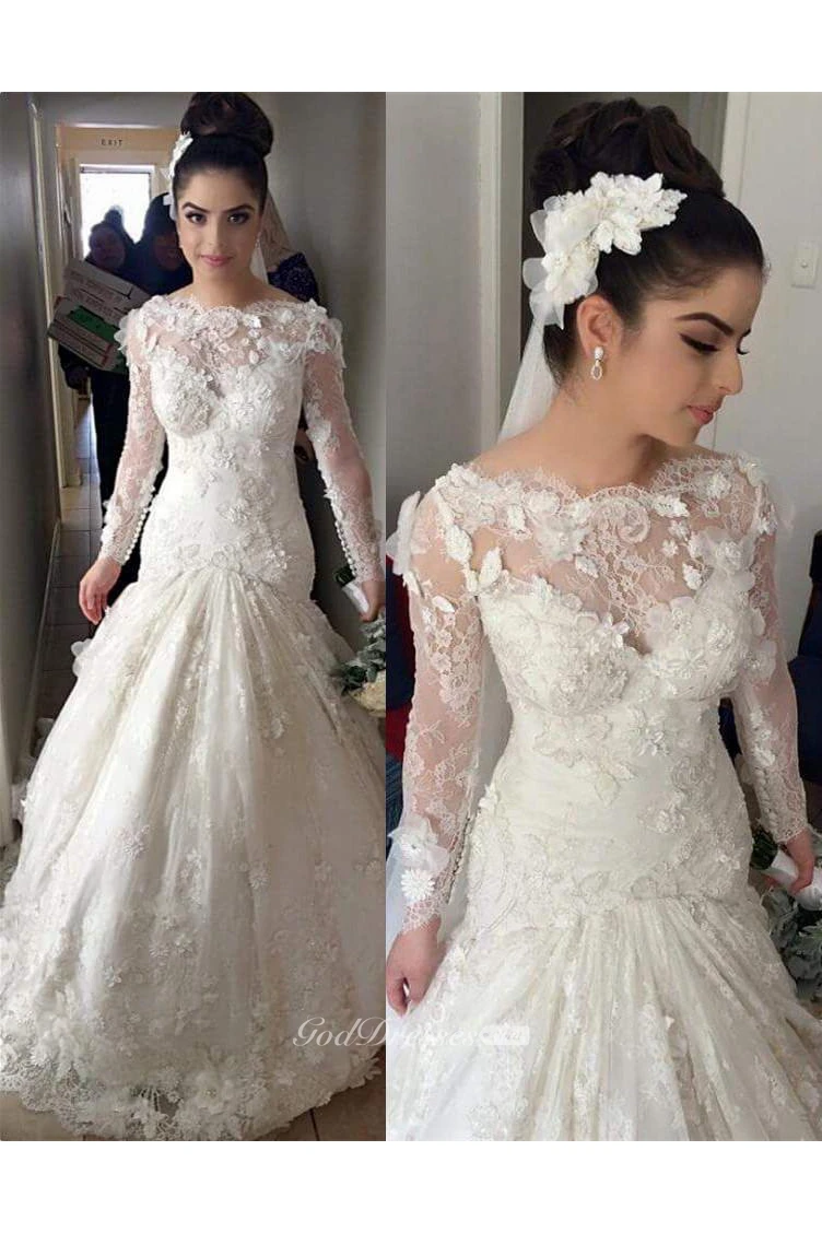 Delicate Illusion Mermaid Tulle Lace Wedding Dress With Flowers