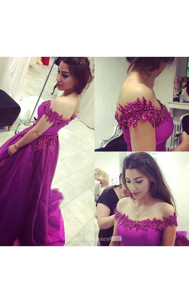 Delicate Lace Appliques A-line Evening Dress Off-the-shoulder Zipper