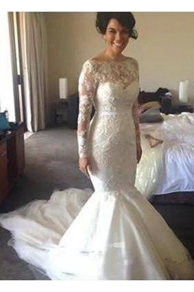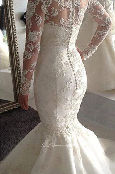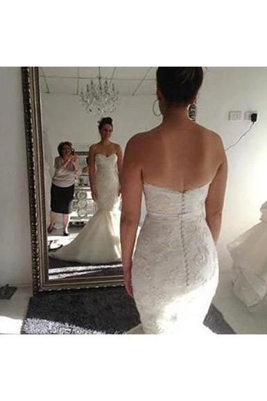 Delicate Lace Appliques Mermaid Wedding Dress Long Train Zipper