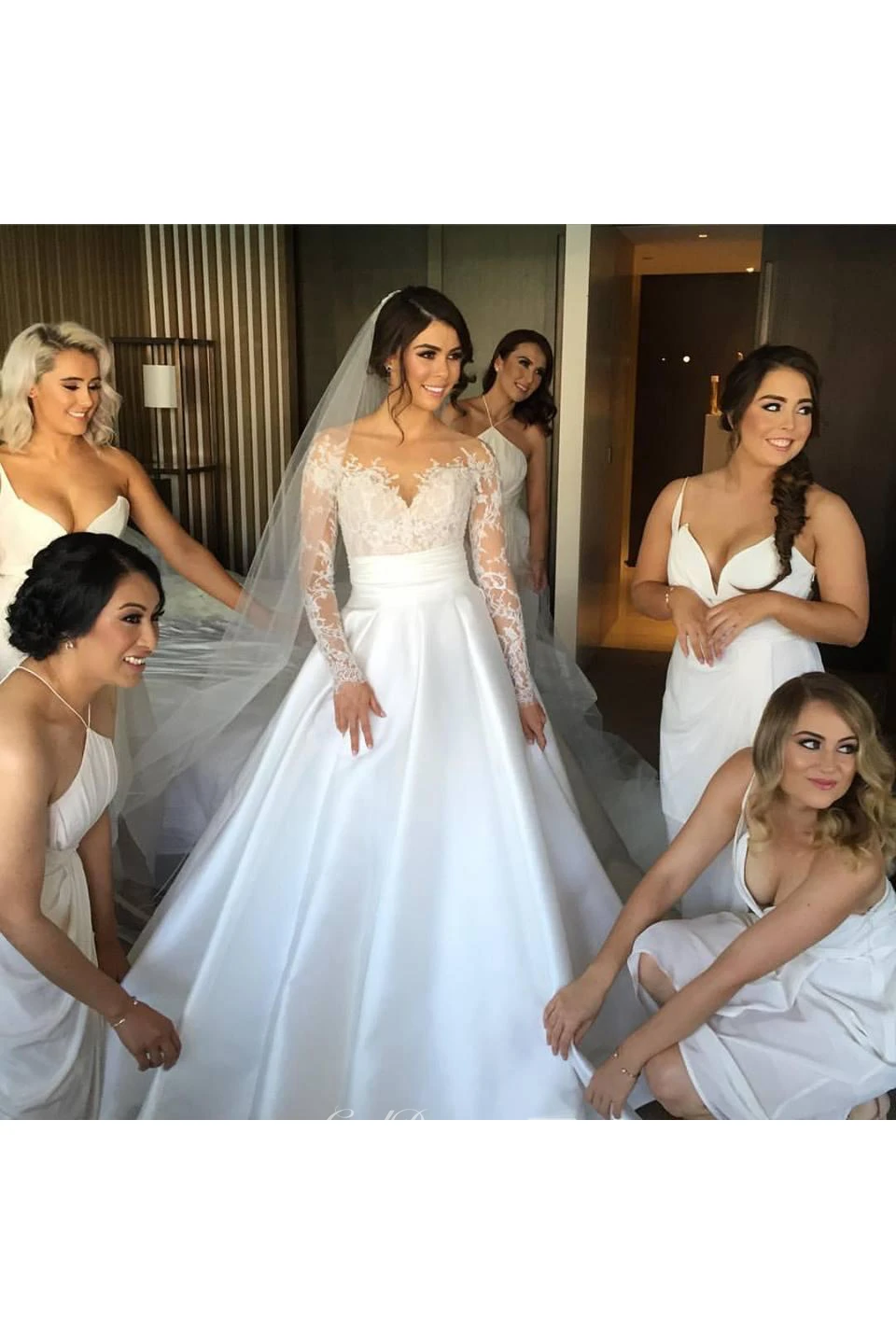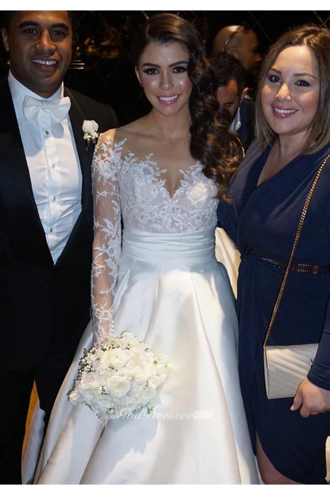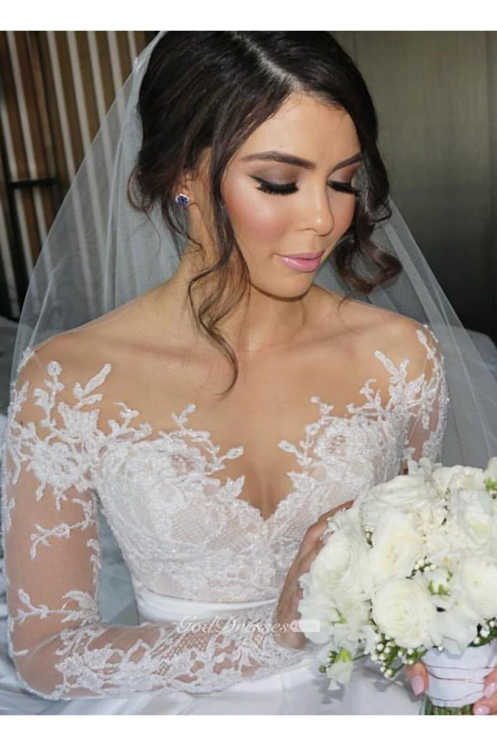 Delicate Lace Appliques Princess Wedding Dress Long Sleeve