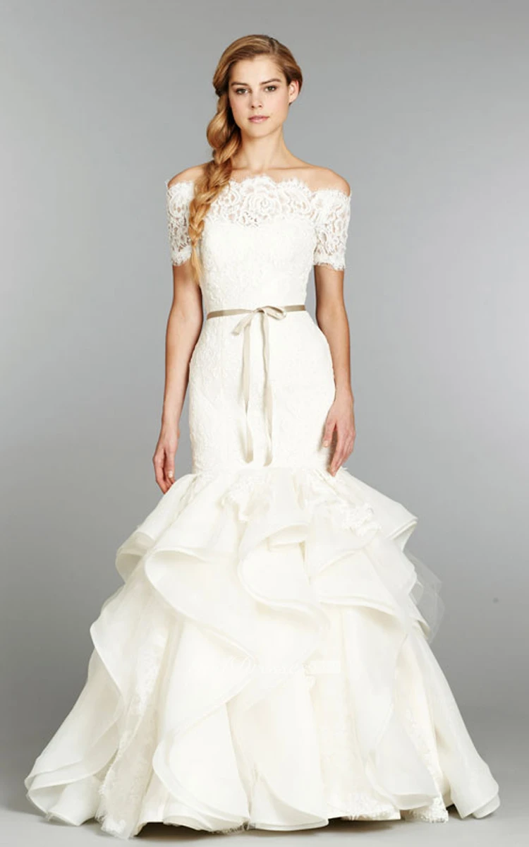 Delicate Lace Organza Gown With Detachable Off the Shoulder Bolero