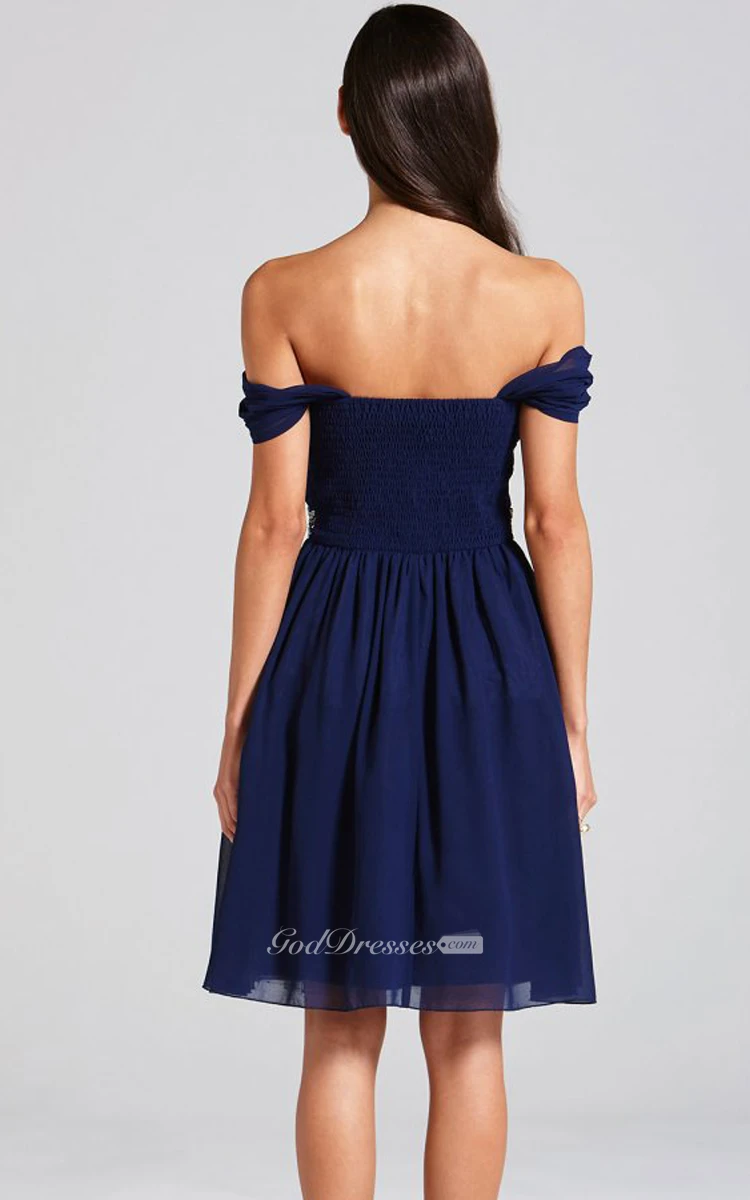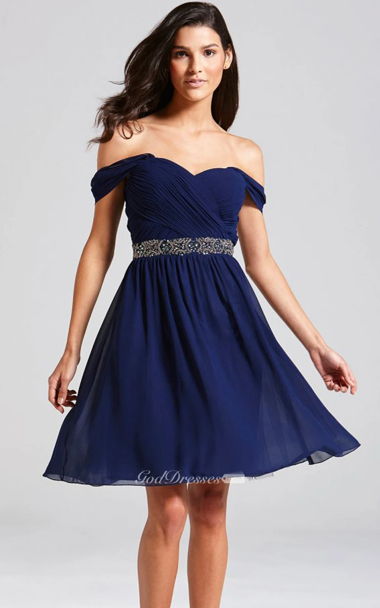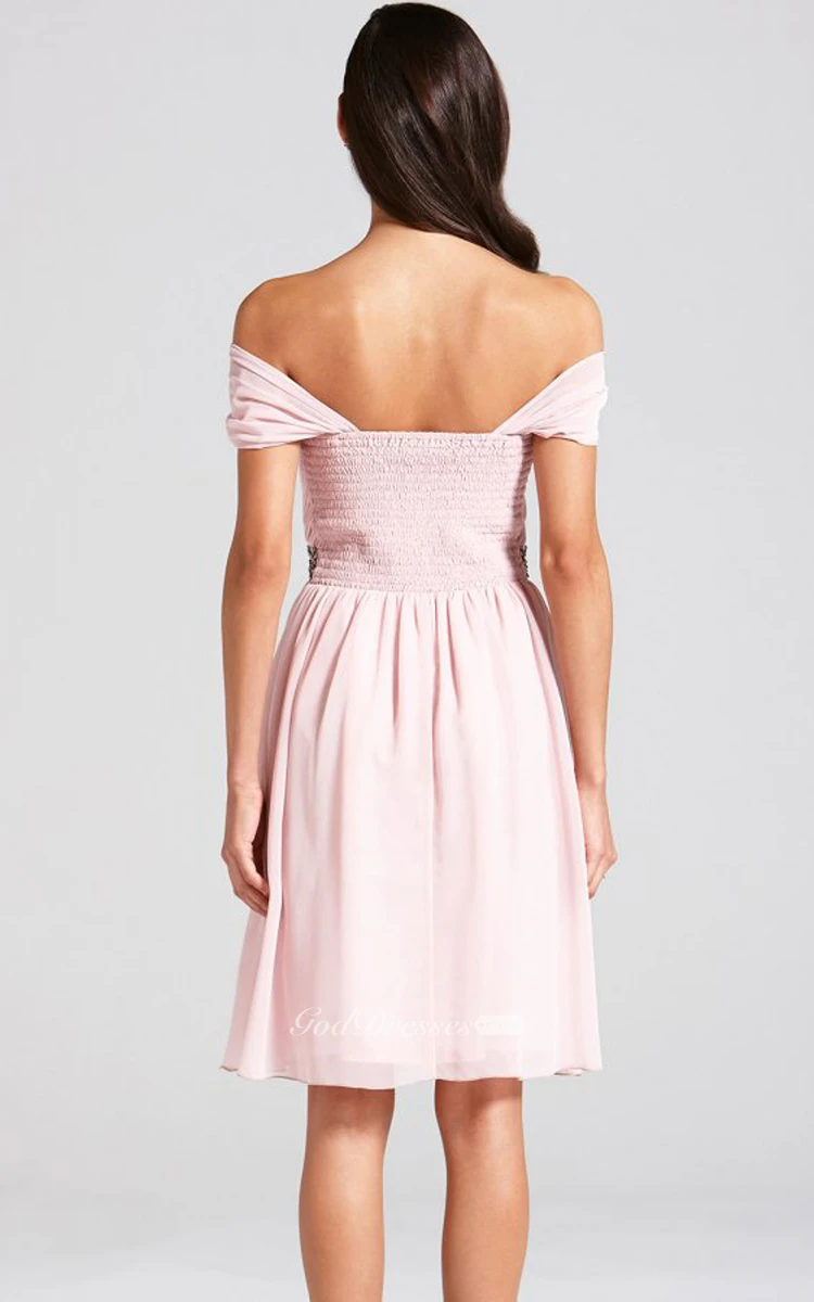 Delicate Off-The-Shoulder A-Line Dress With Beaded Sash