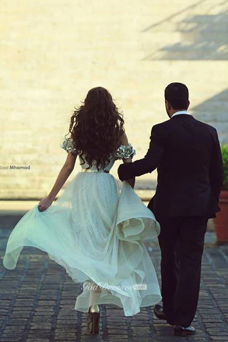 Delicate Off-the-shoulder Chiffon Flowers Wedding Dress Front Split