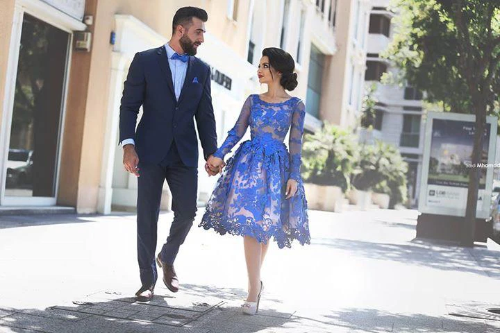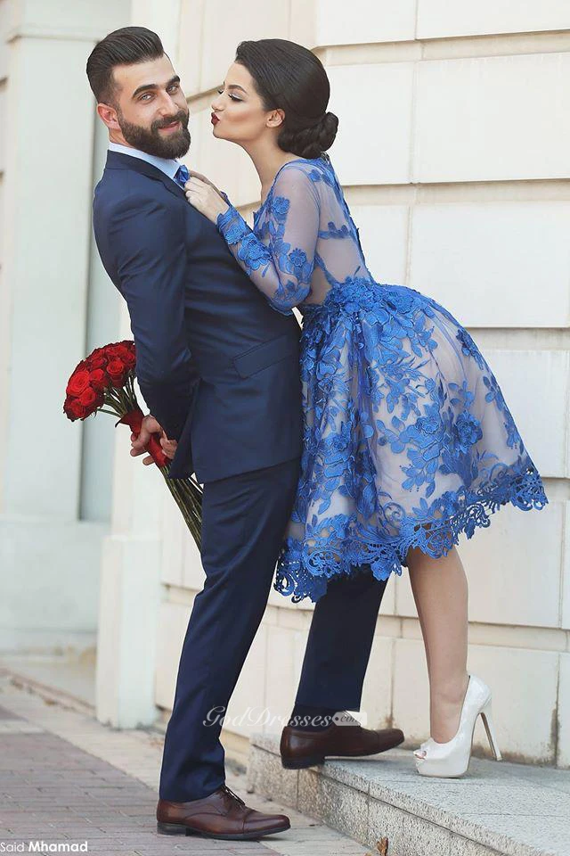 Delicate Ruyal Blue Appliques Prom Dress Long Sleeve
