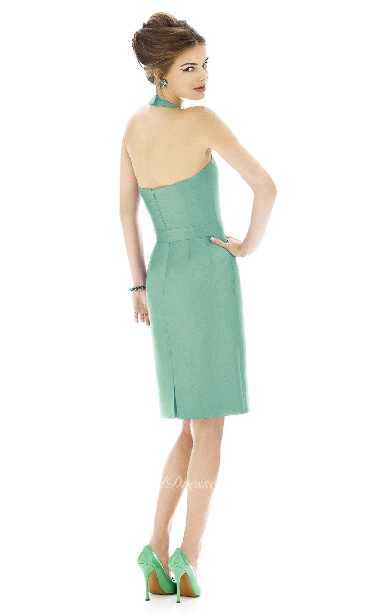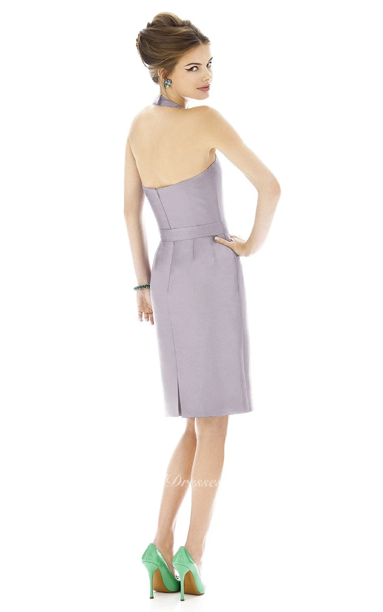 Delicate Sleeveless Halter Sheath With Ruching