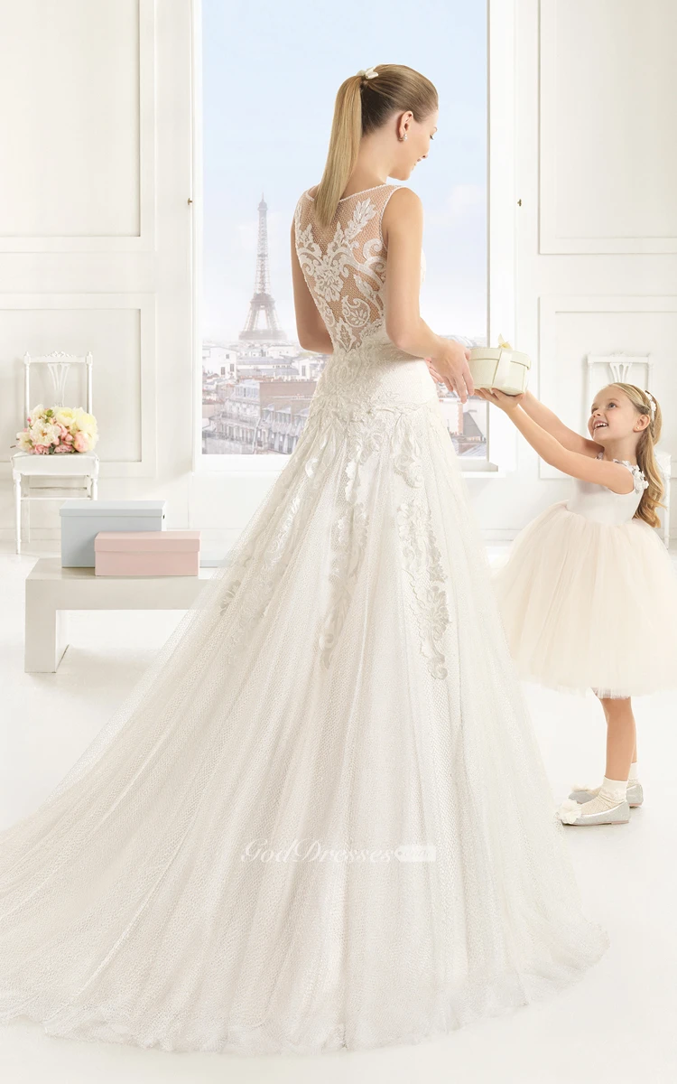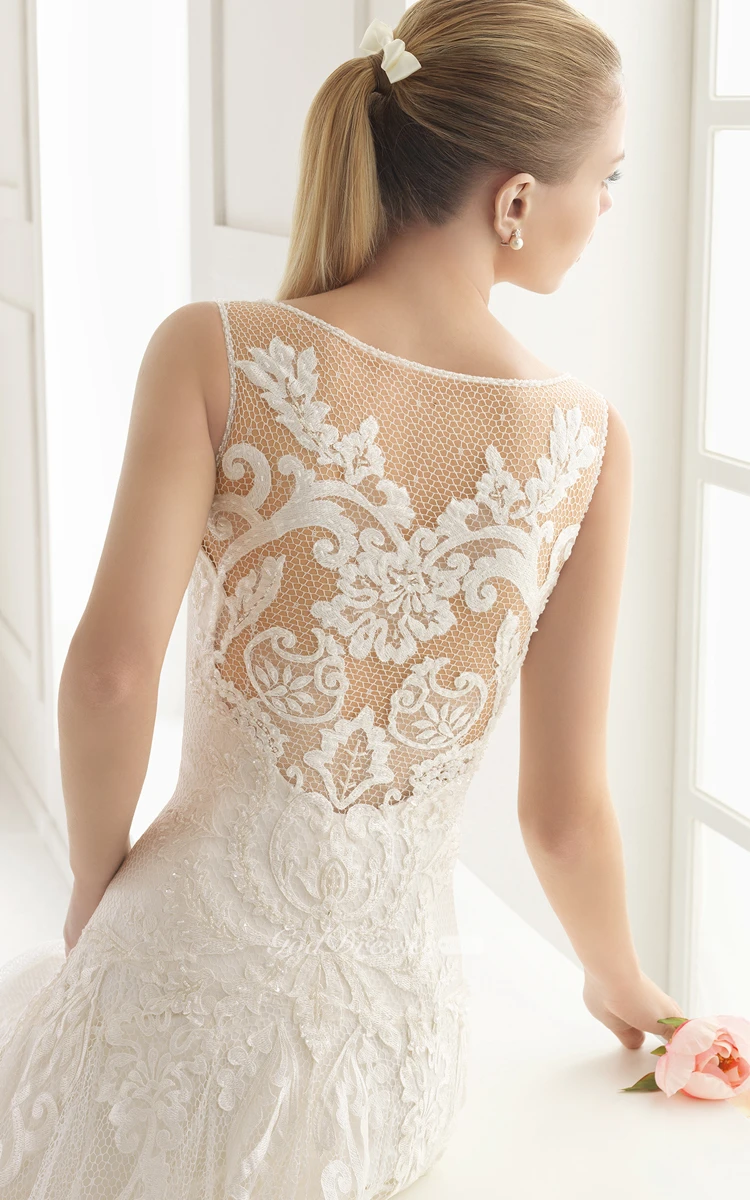 Delicate Sleevless Bateau-Neck Dress With Illusion Back