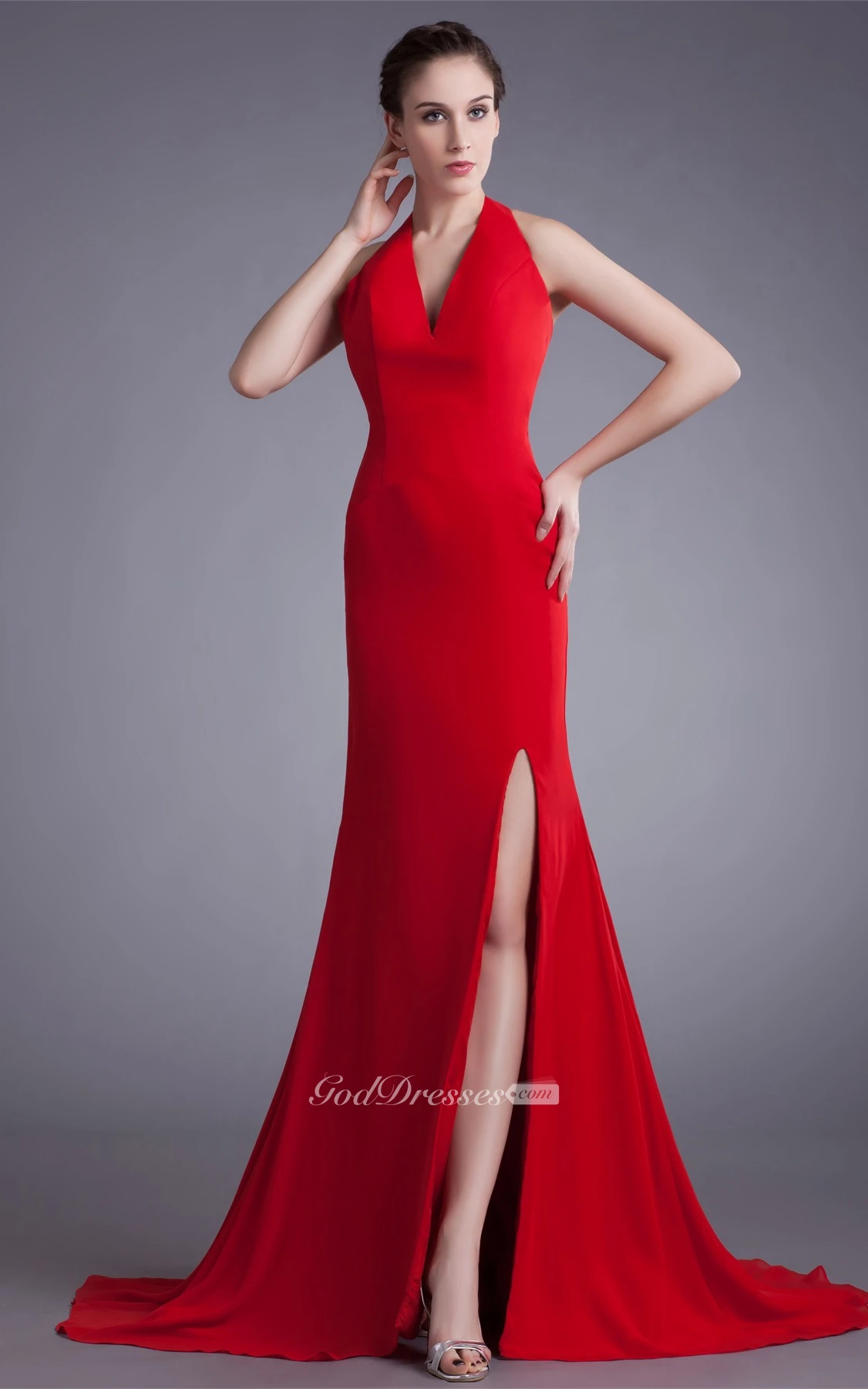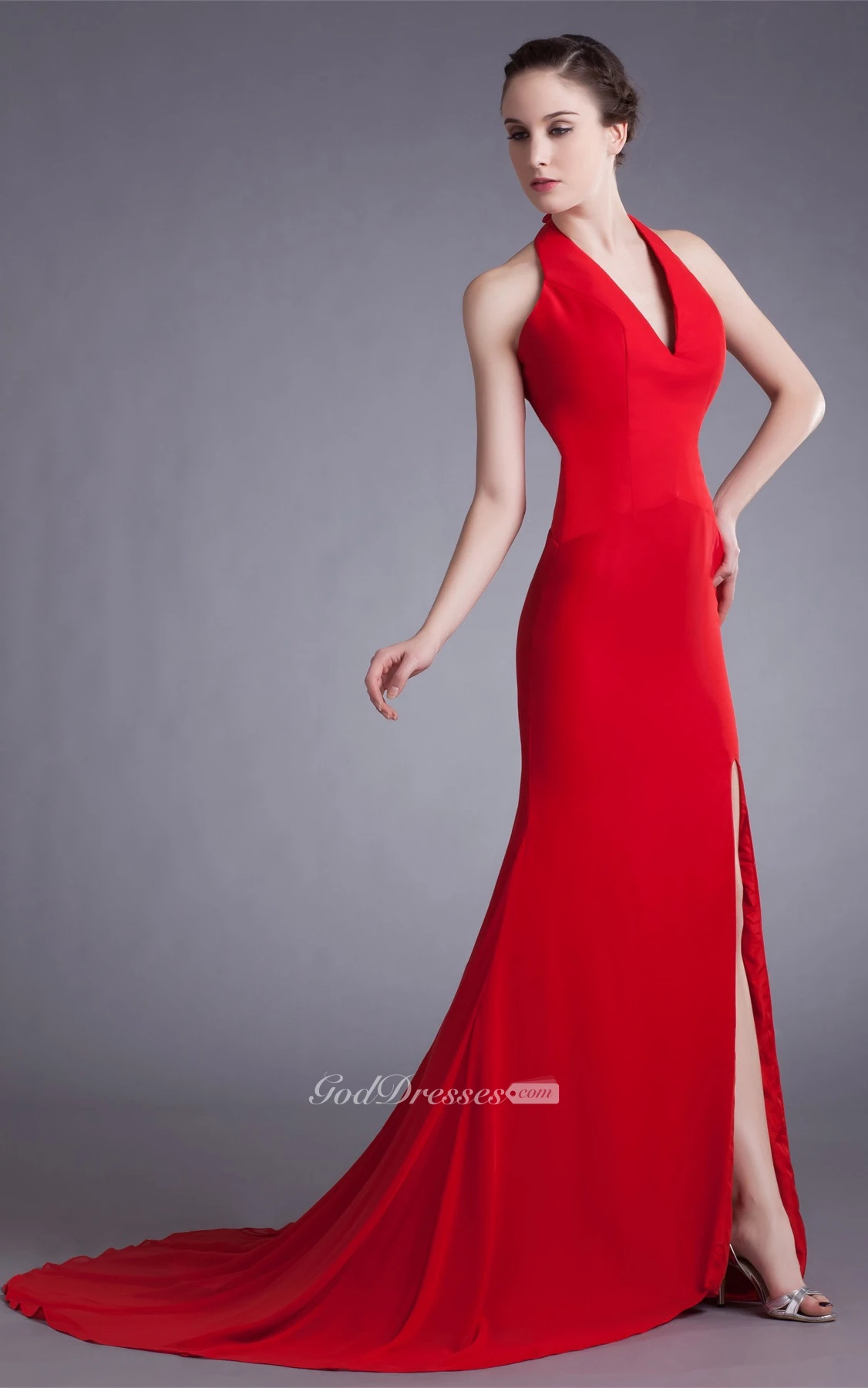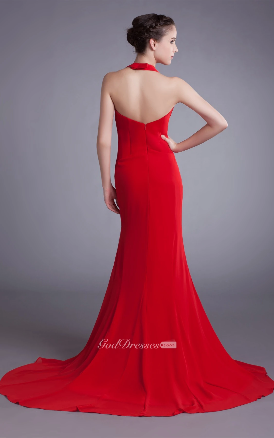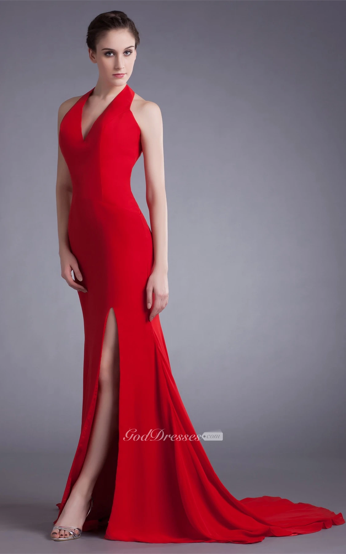 Delicate Split Side Sleeveless Halter Chiffon Special Occasion Dresses
