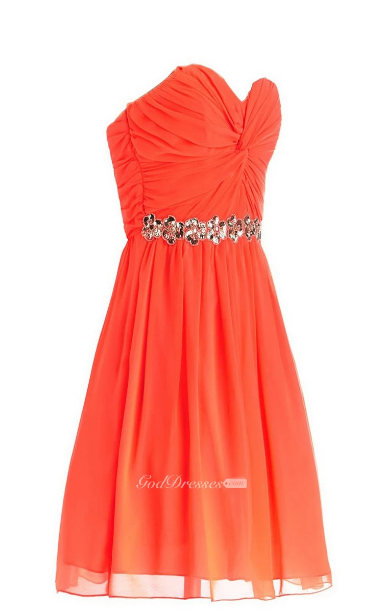 Delicate Sweetheart Drapped Short Dress With Sequined Band