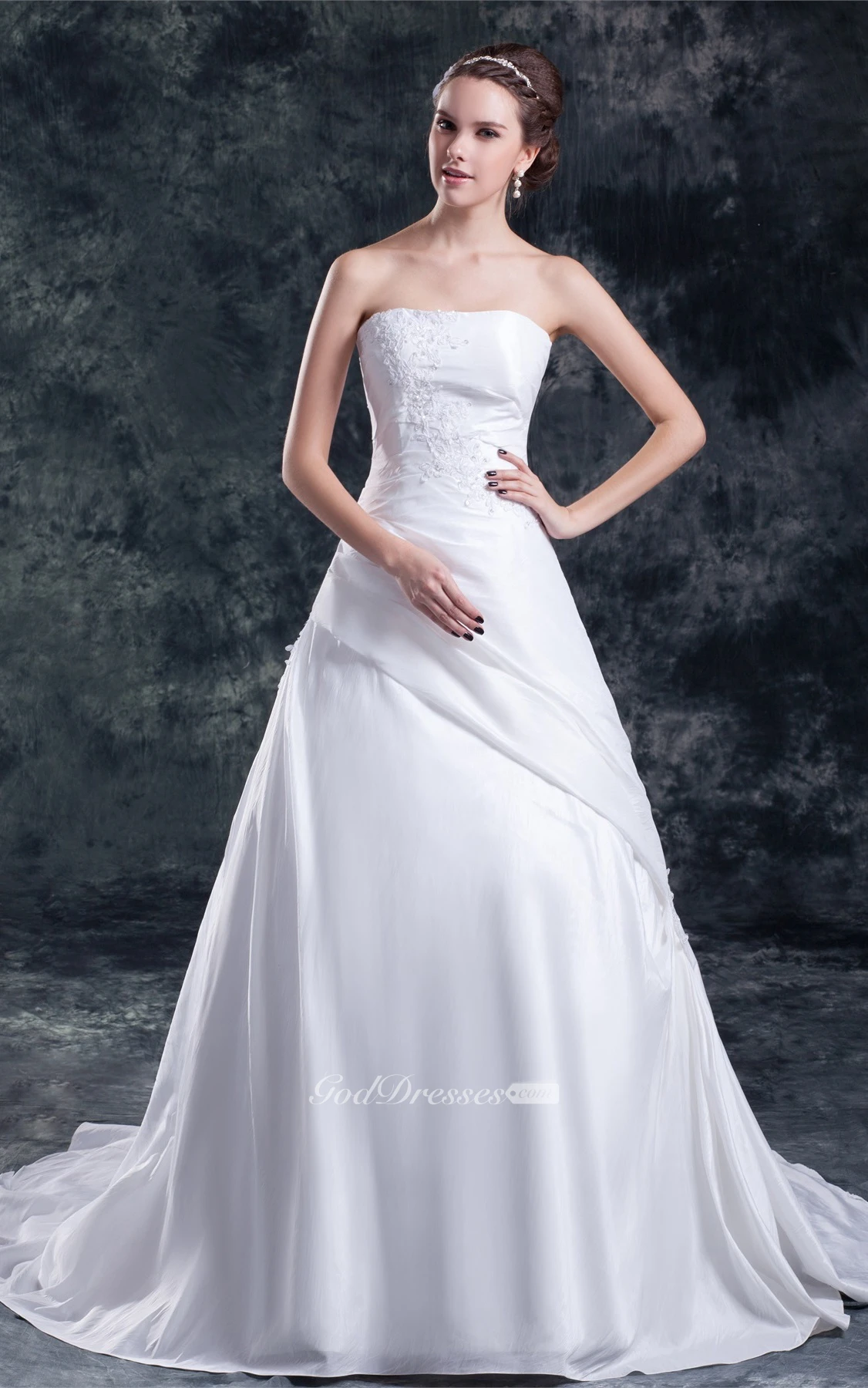 Delicate Taffeta a Line Strapless Sleeveless Wedding Dresses