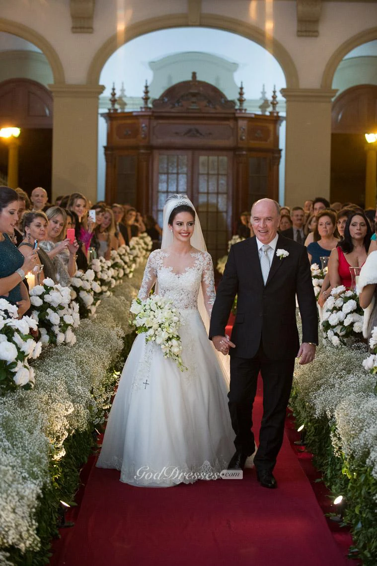 Delicate Tulle Lace Appliques Wedding Dress Zipper Button Back