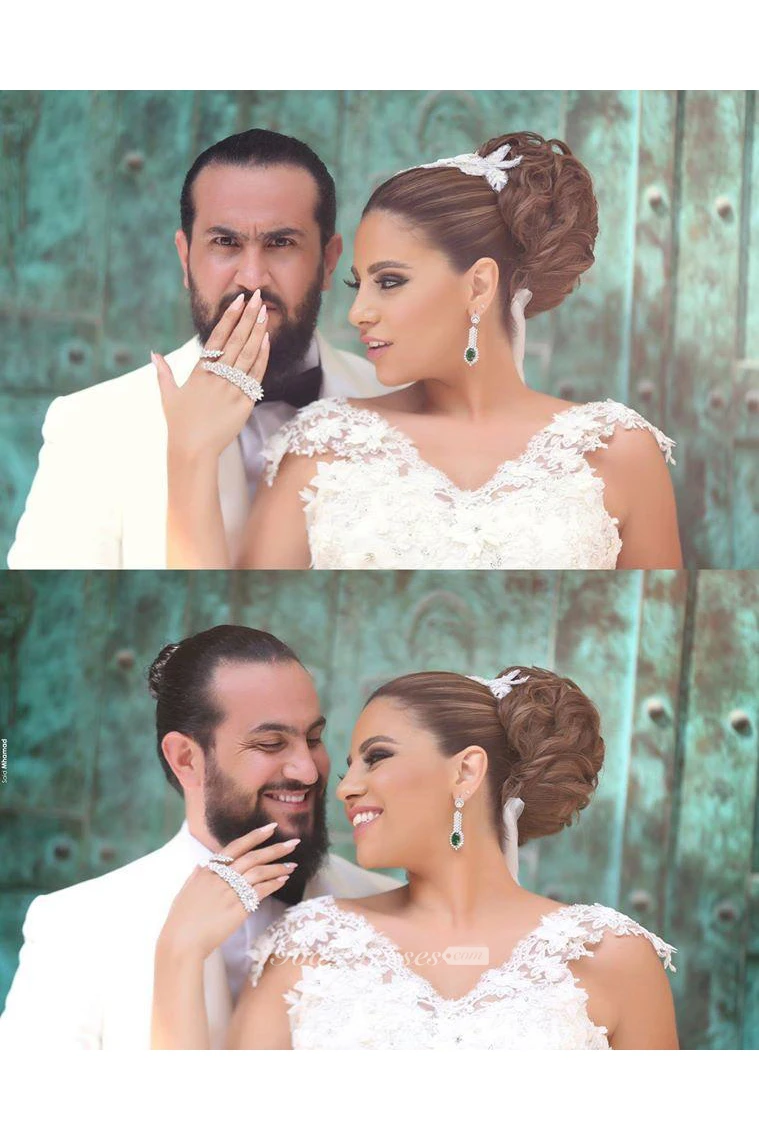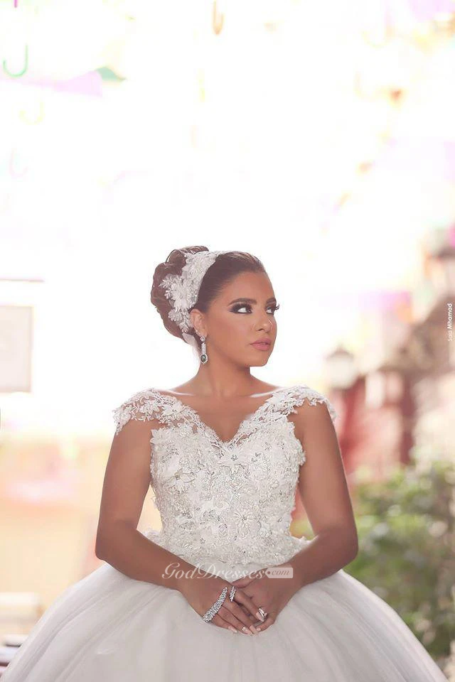 Delicate Tulle Lace Flowers Wedding Dress Ball Gown Cap Sleeve Plus Size