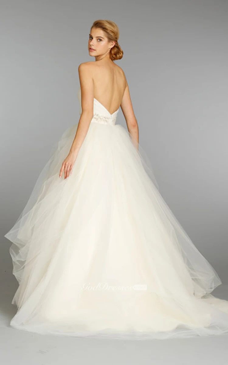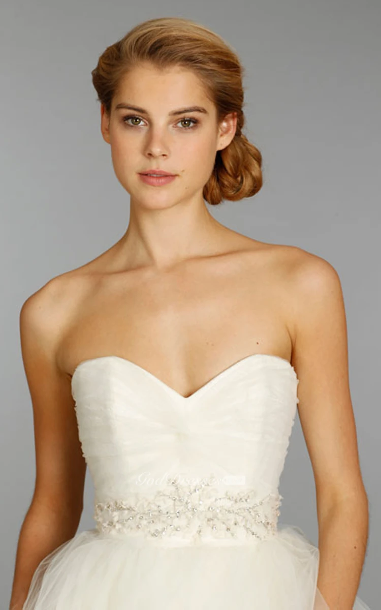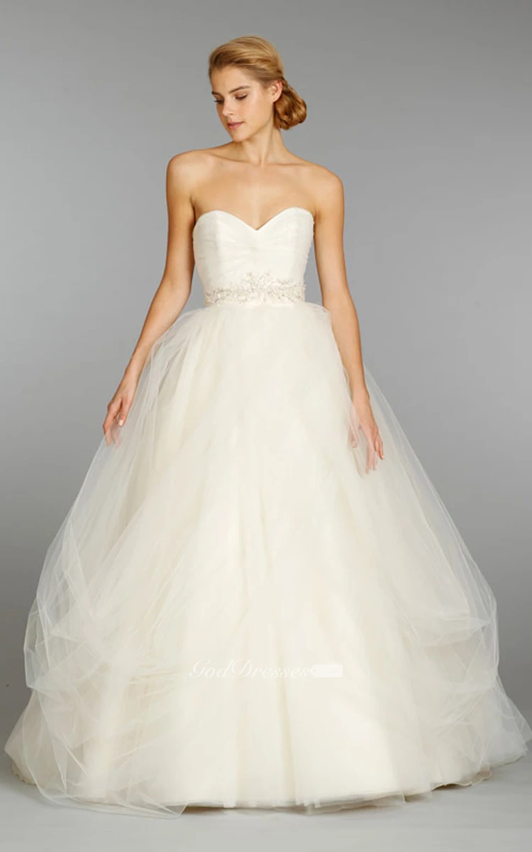 Demure Sweetheart Neckline Tulle Ball Gown With Beaded Embroidered Waistline