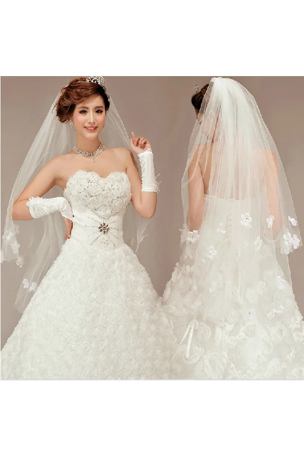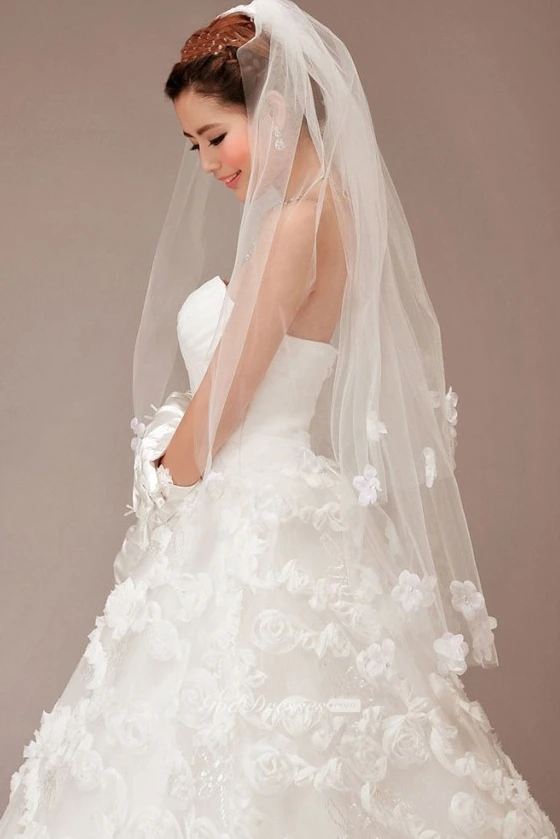 Double Layer Tulle Wedding Veil with Flower Appliques