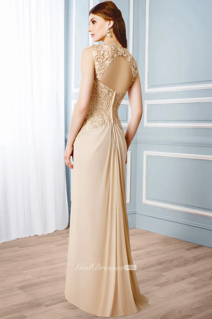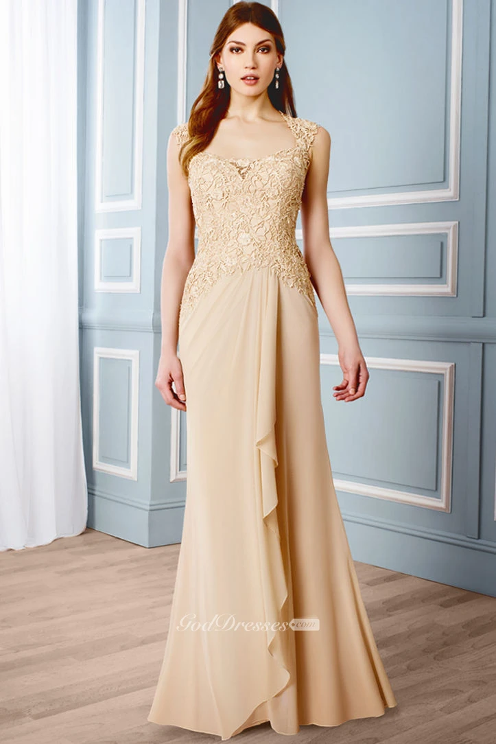 Draped Sleeveless Queen Anne Chiffon Formal Dress