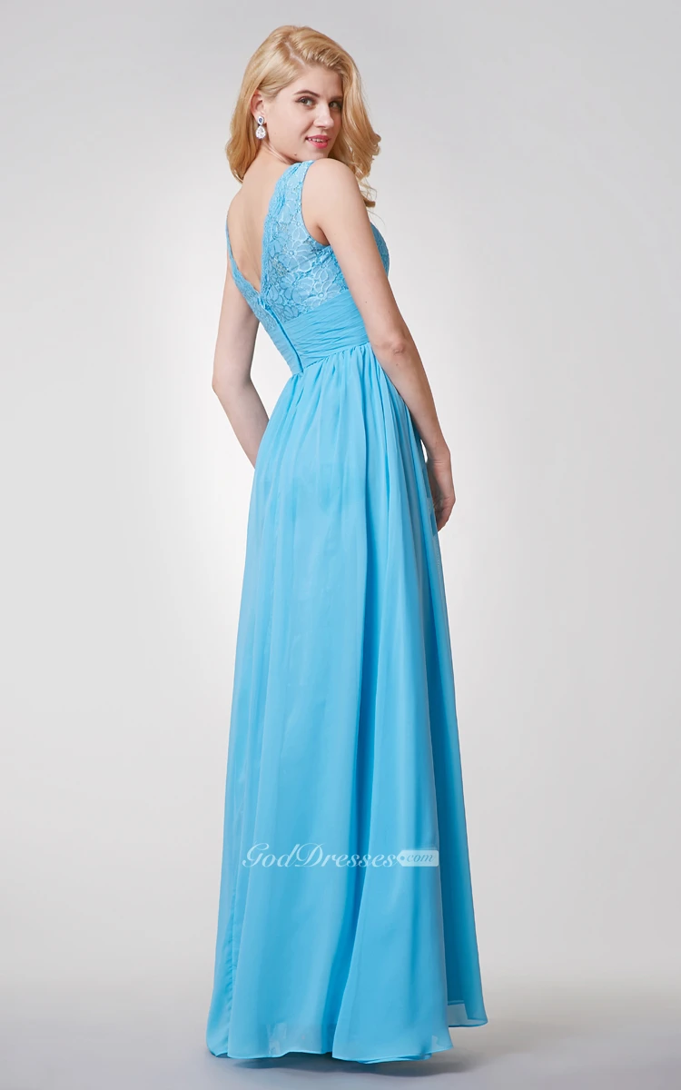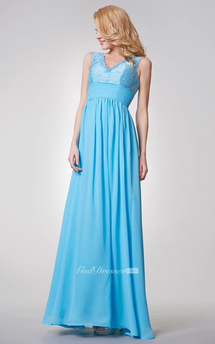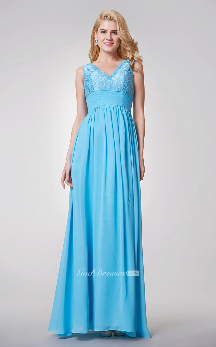 Dreaming Lace Top V-neck A-line Long Chiffon Dress