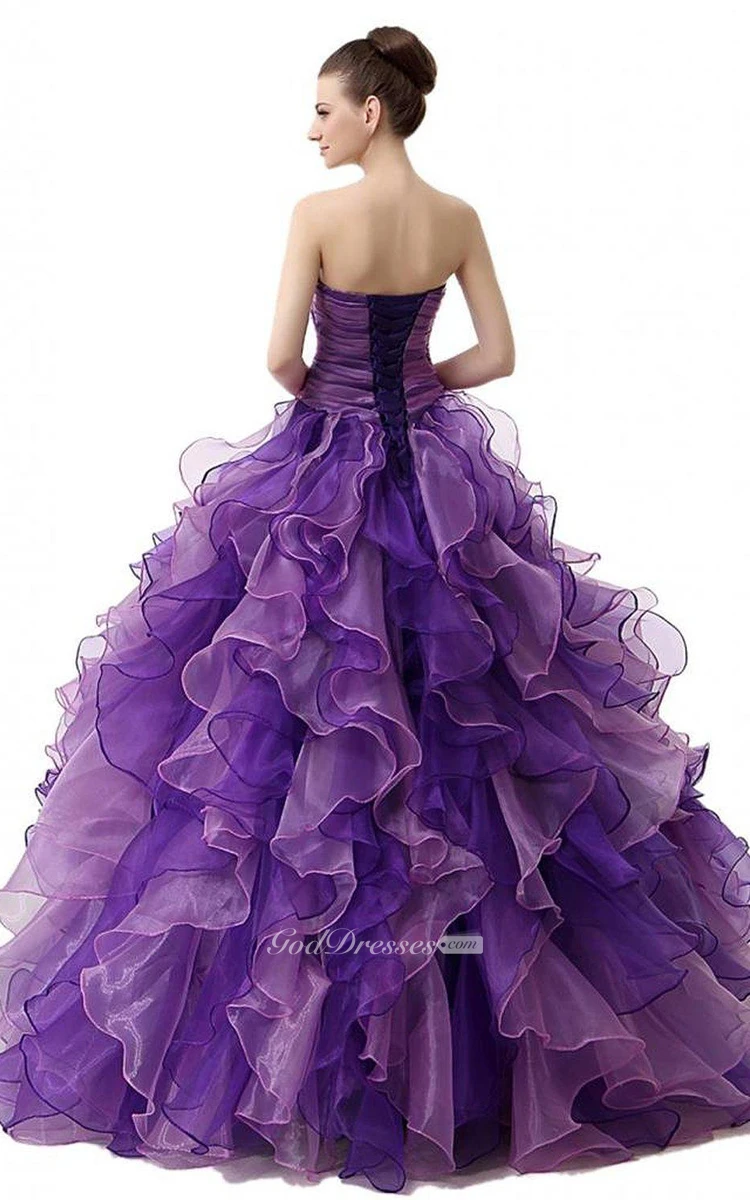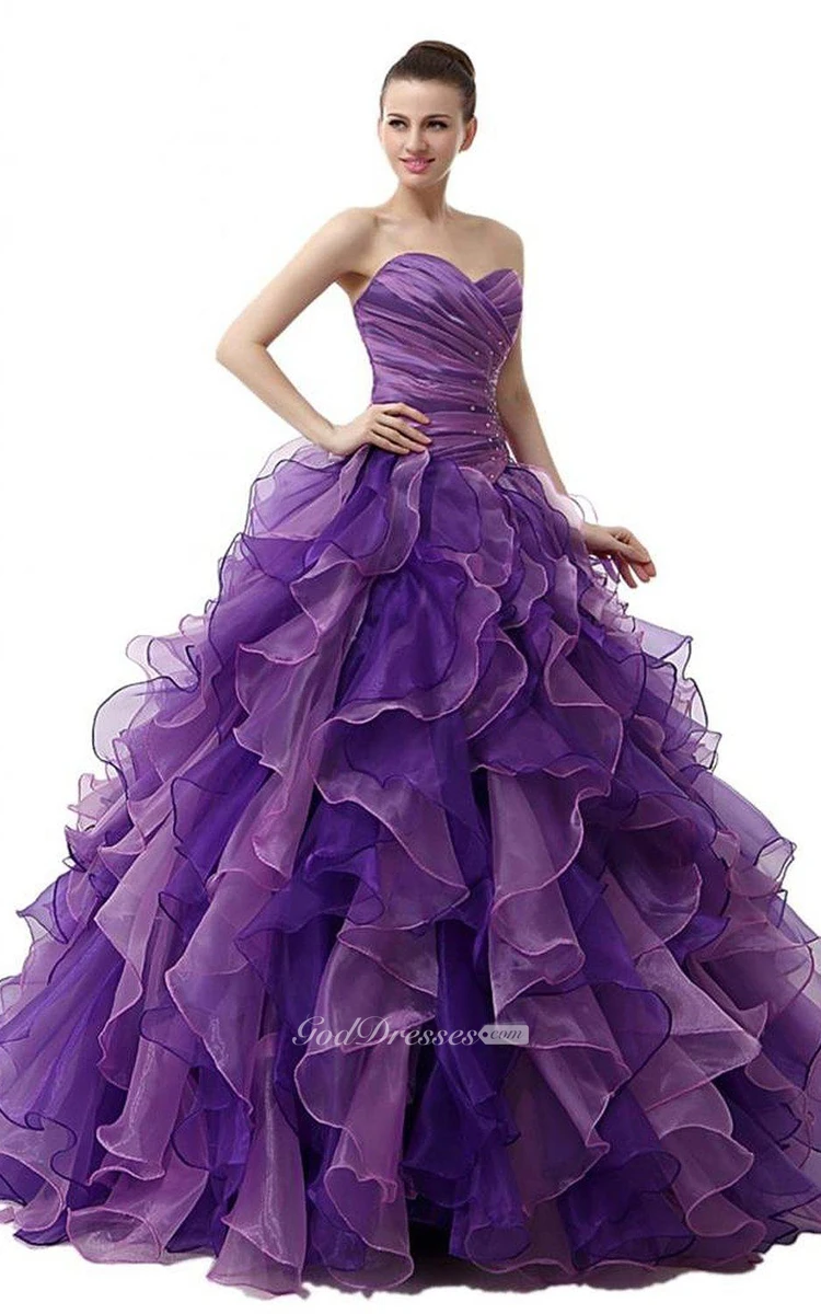 Dreaming Sweetheart Ruched Ball Gown With Cascading Ruffles and Rhinestones