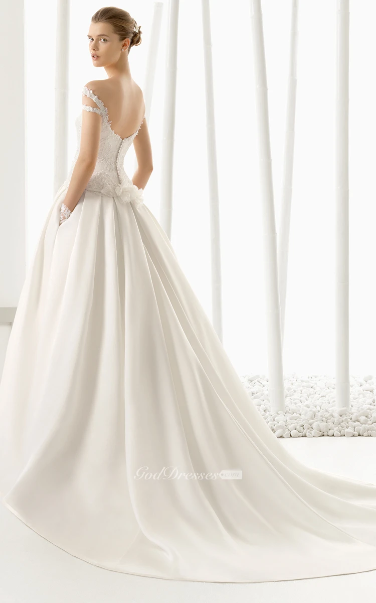 Dropped-Wasitline Double Off Strapped Gown With Lacy Bodice