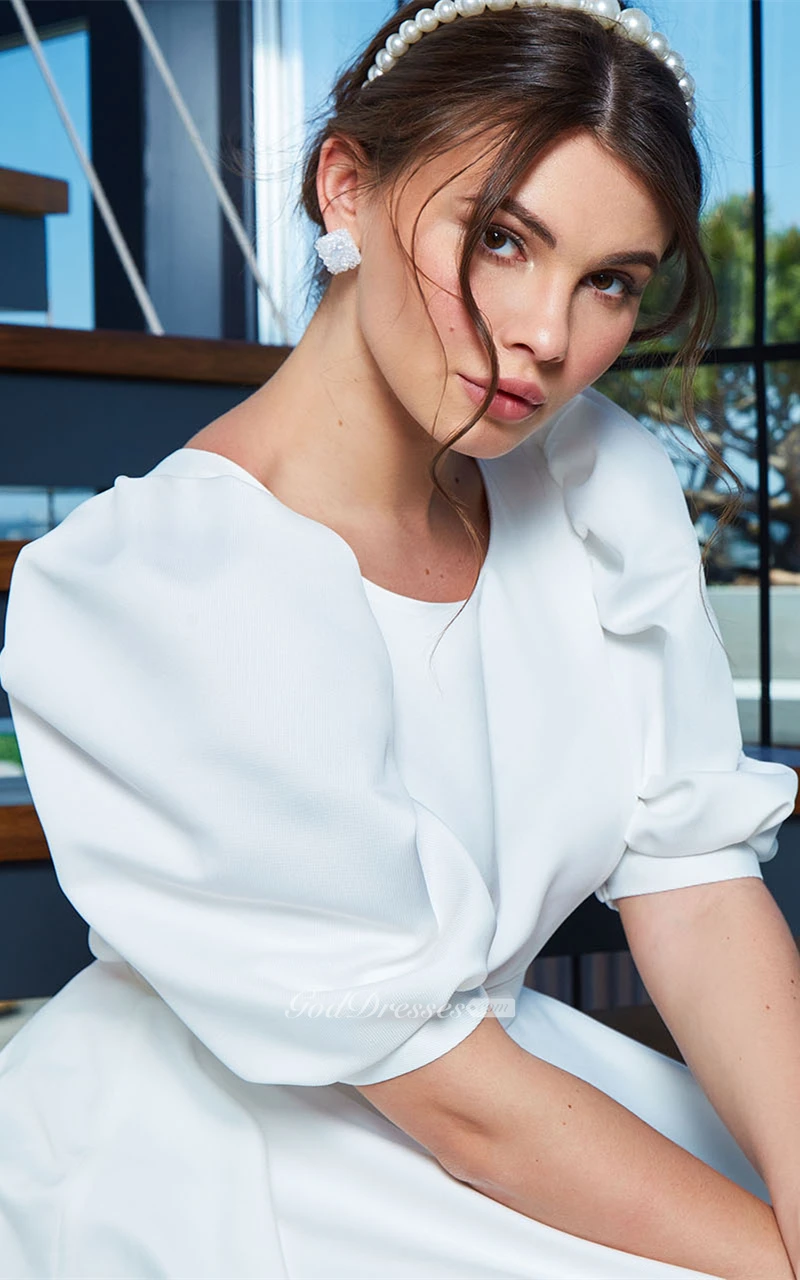 Elegant A Line Bateau Satin Wedding Dress with Ruching
