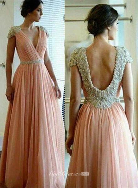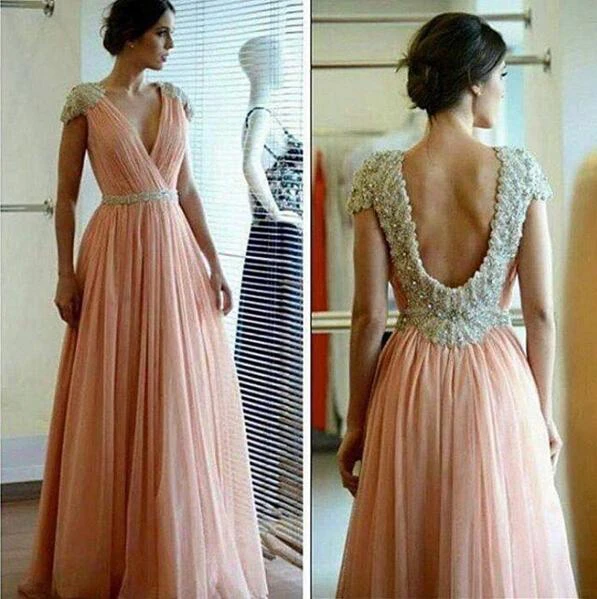 Elegant A-line Lace Appliques Prom Dress V-neck Beadings