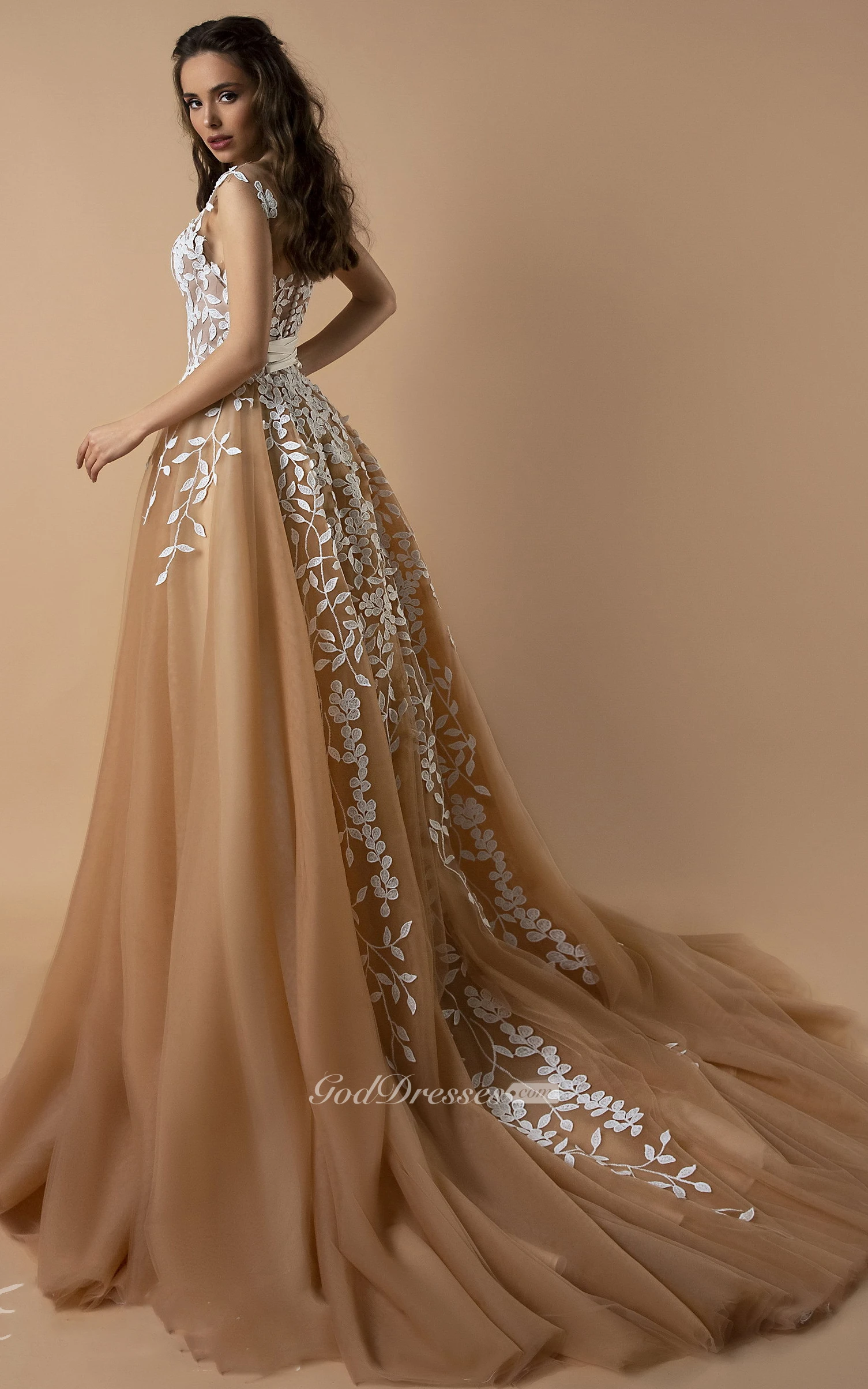 Elegant A Line Lace Bateau Floor-length Button Evening Dress with Appliques