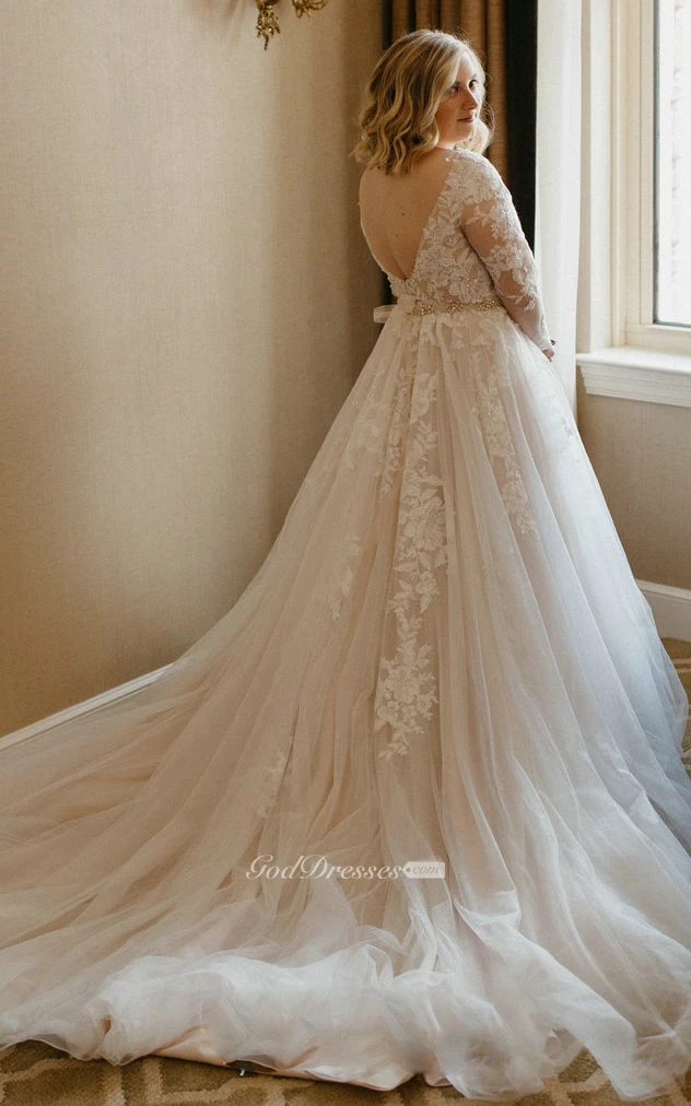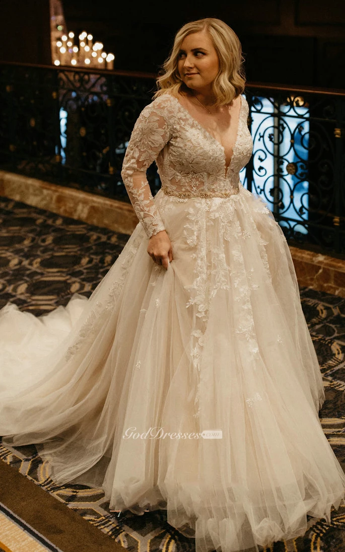 This is my wedding dress and people couldn’t stop complimenting me on how beautiful the dress was. I felt like a princess wearing it! The plunging neck was so sexy!