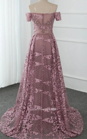 Elegant A Line Lace Brush Train Sleeveless Zipper Evening Dress with Beading