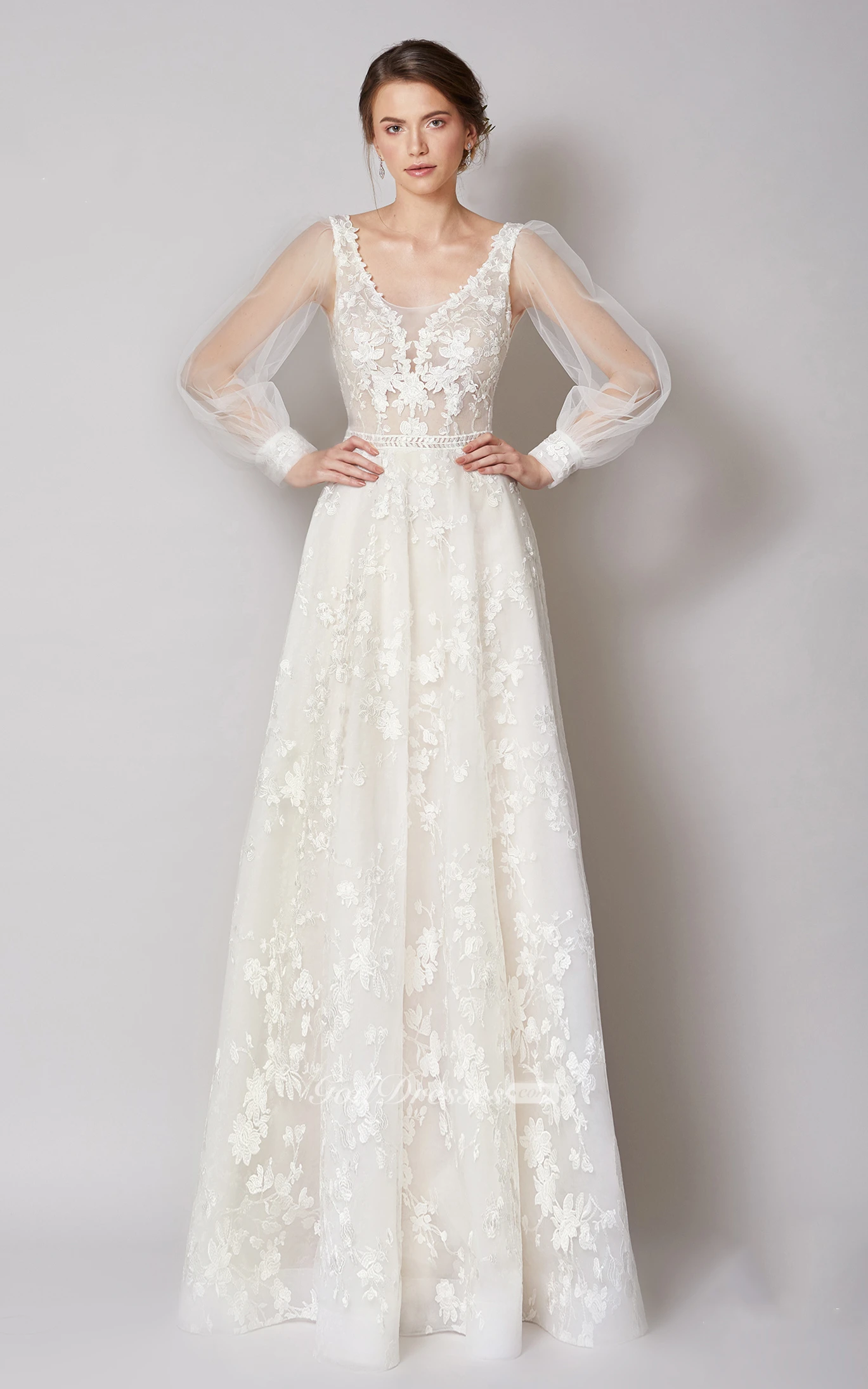 Elegant A Line Lace V-neck Bridal Dress with Appliques