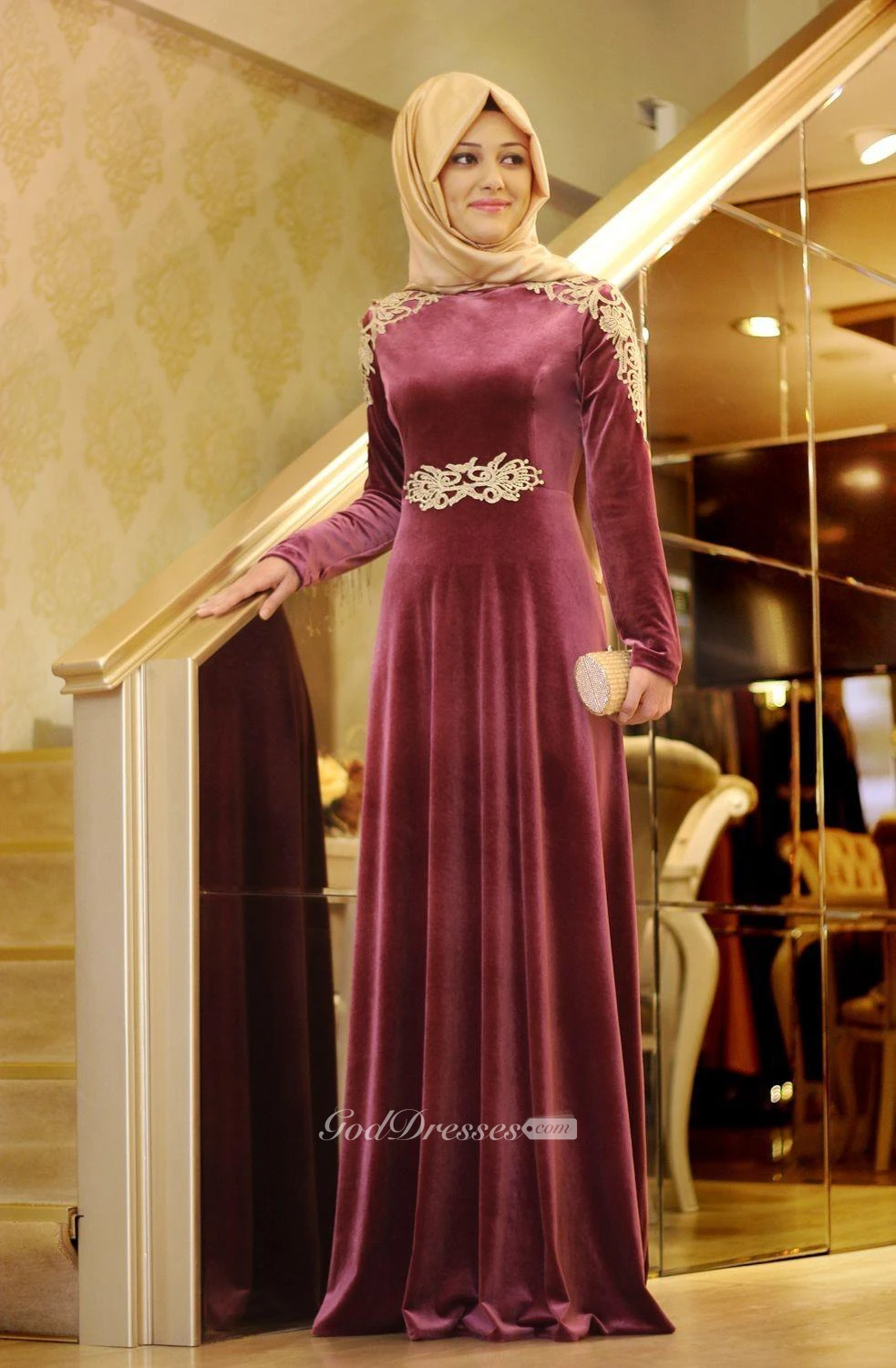 Elegant Appliques A-line Long Sleeve Evening Dress Floor-length