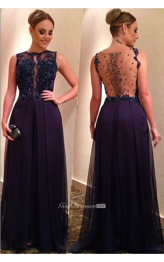 Elegant Beadings Lace Appliques Evening Dress A-line Floor-length