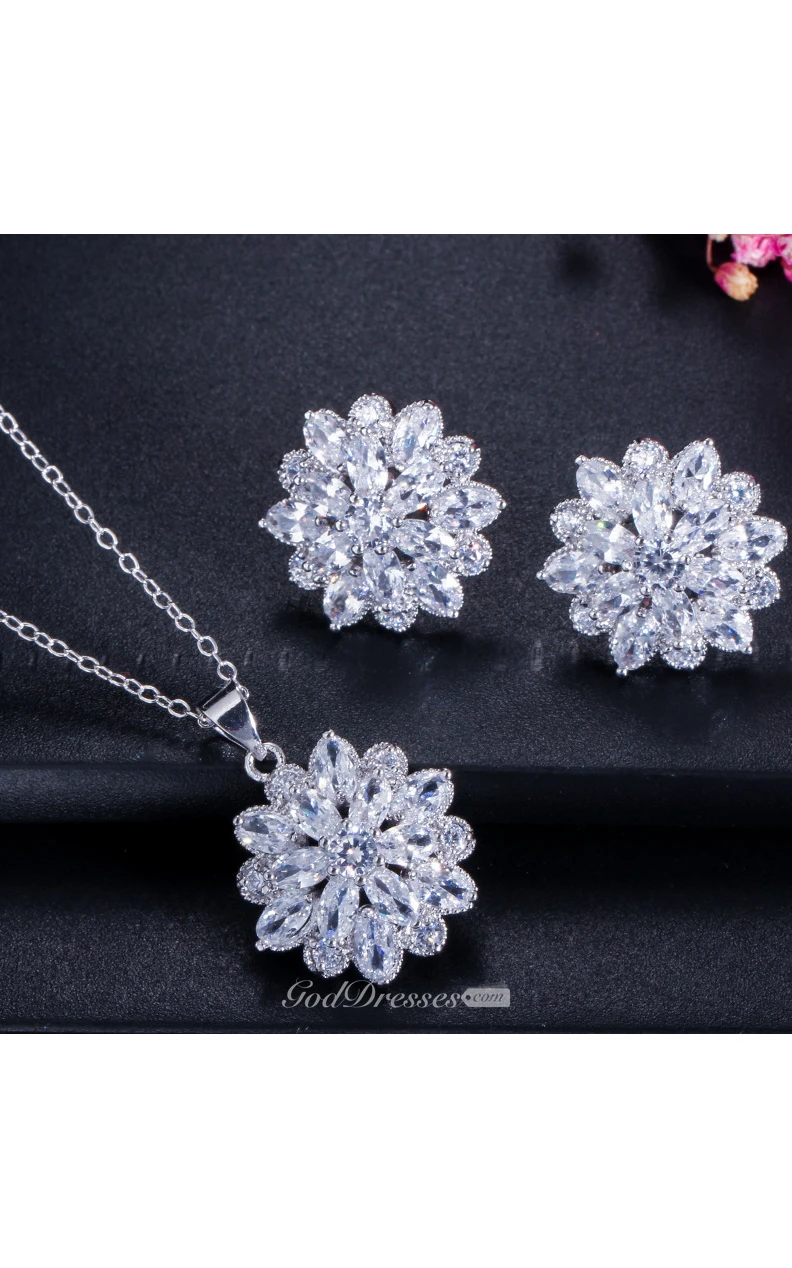 Elegant Bridal Snow Shaped Rhinestone Necklace and Earrings Jewelry Set