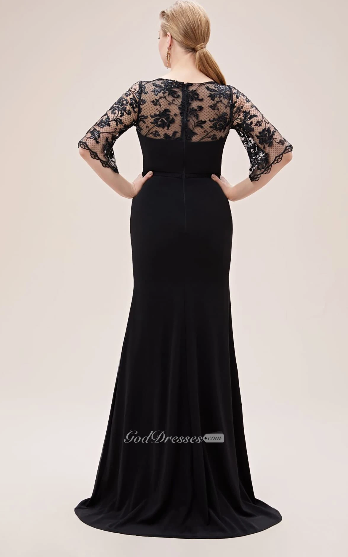 Elegant Brush Train Half Sleeve Jersey Sheath Zipper Prom Dress with Lace
