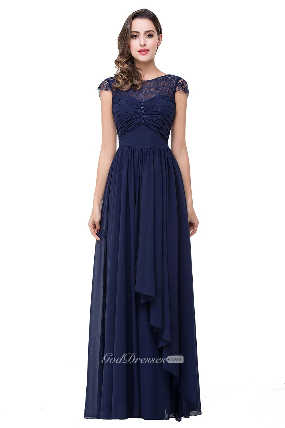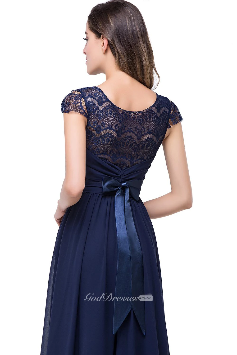 Elegant Chiffon Lace A-line Prom Dress Bowknot Cap Sleeve