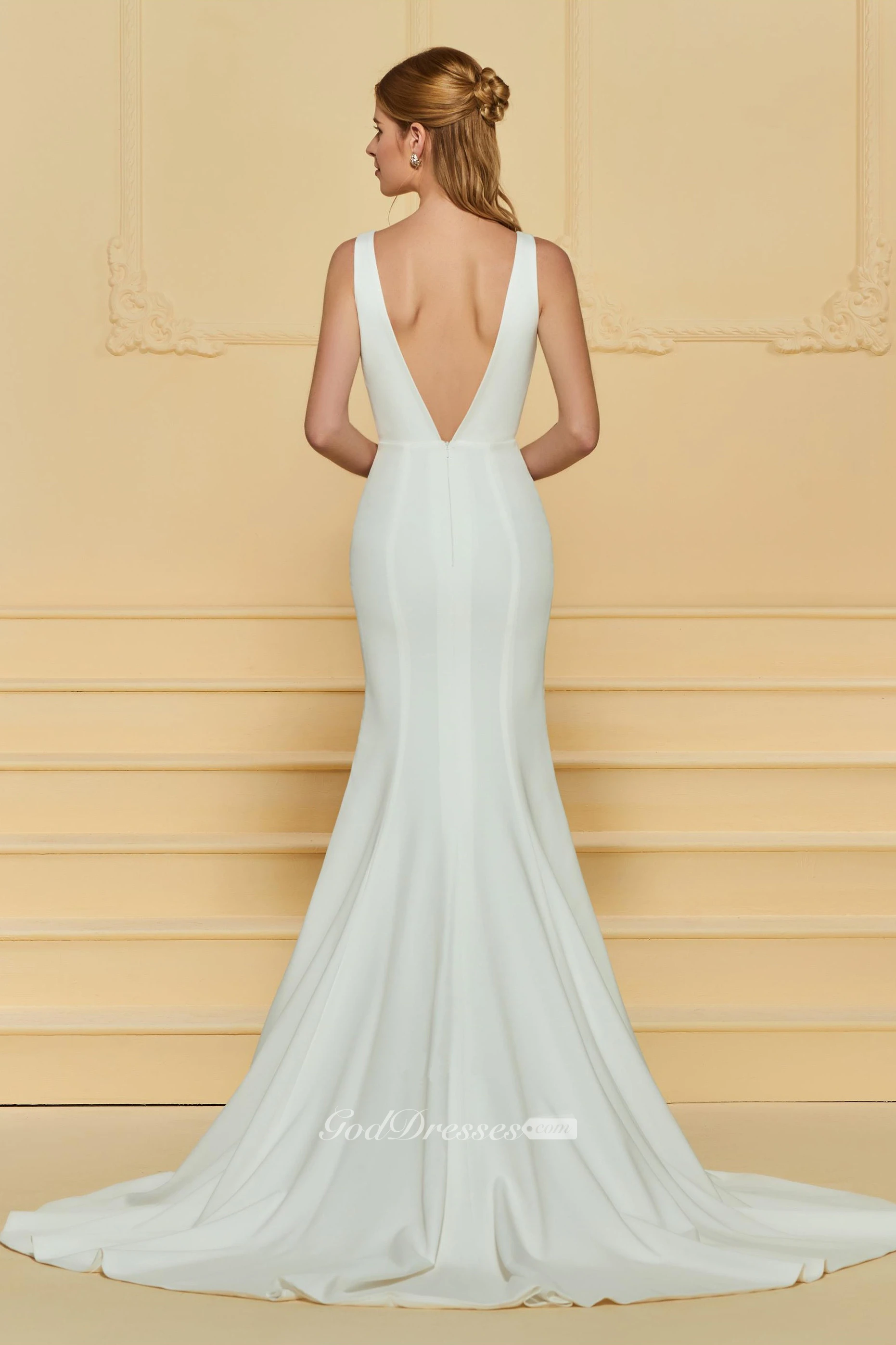 Elegant Chiffon Plunging Deep-V Back Floor-Length Dress