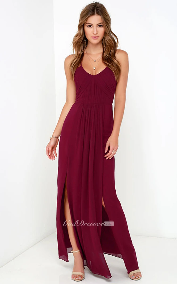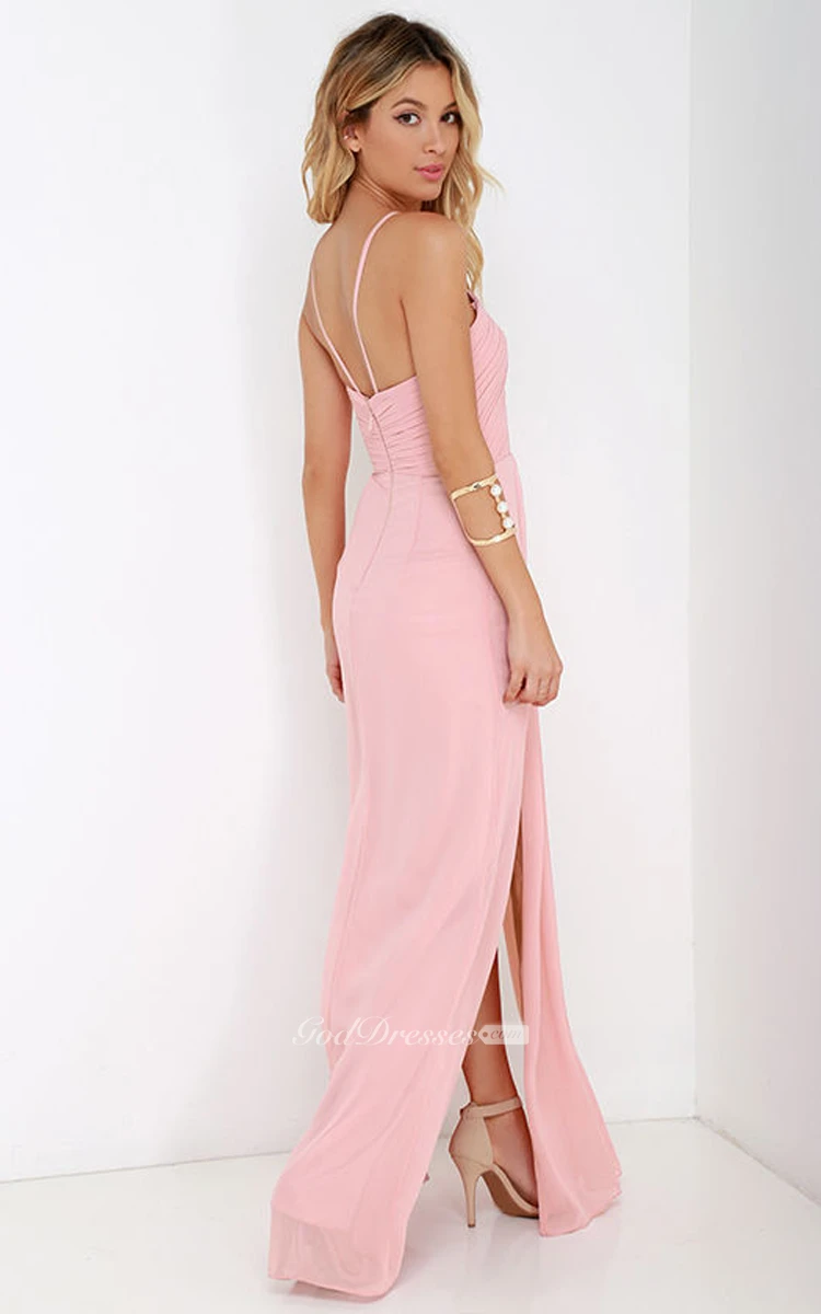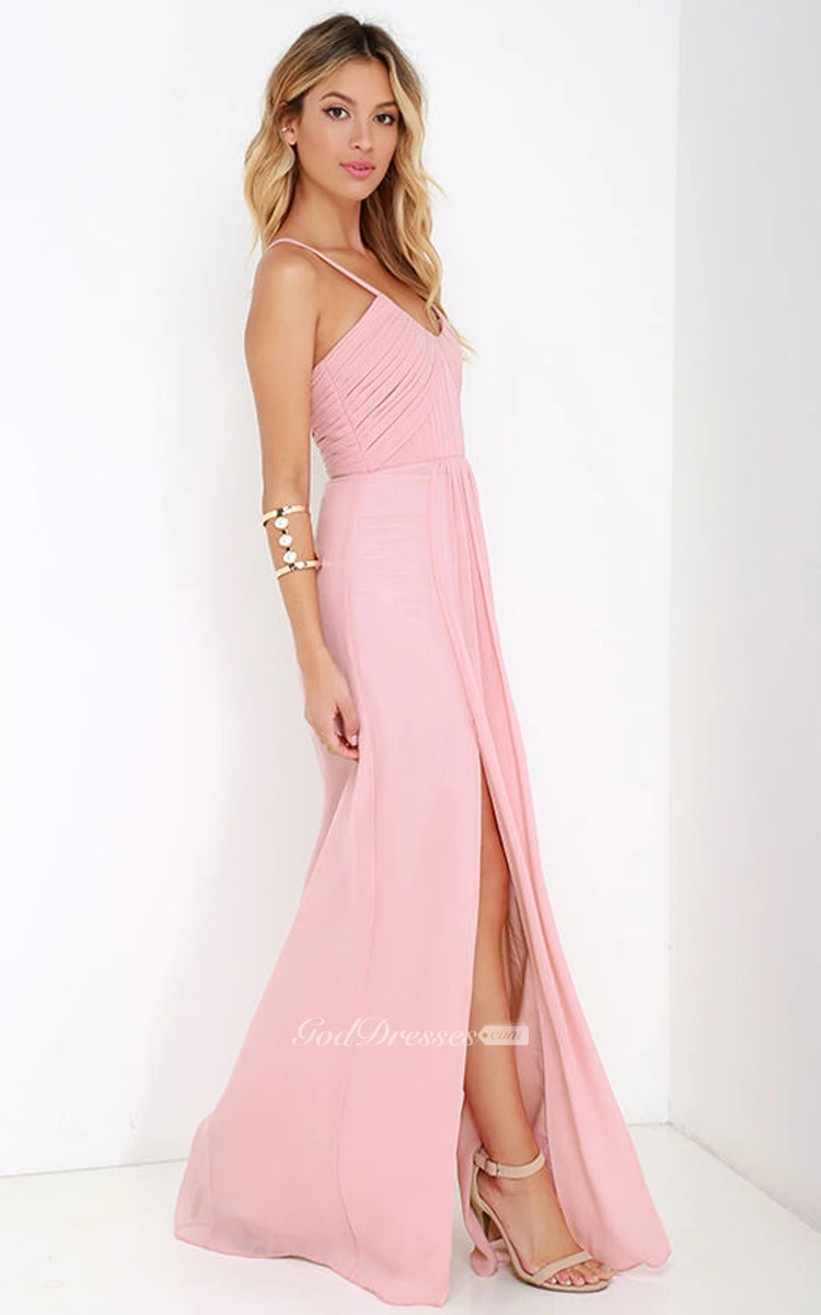 Elegant Chiffon Sleeveless Gown With Side Splits