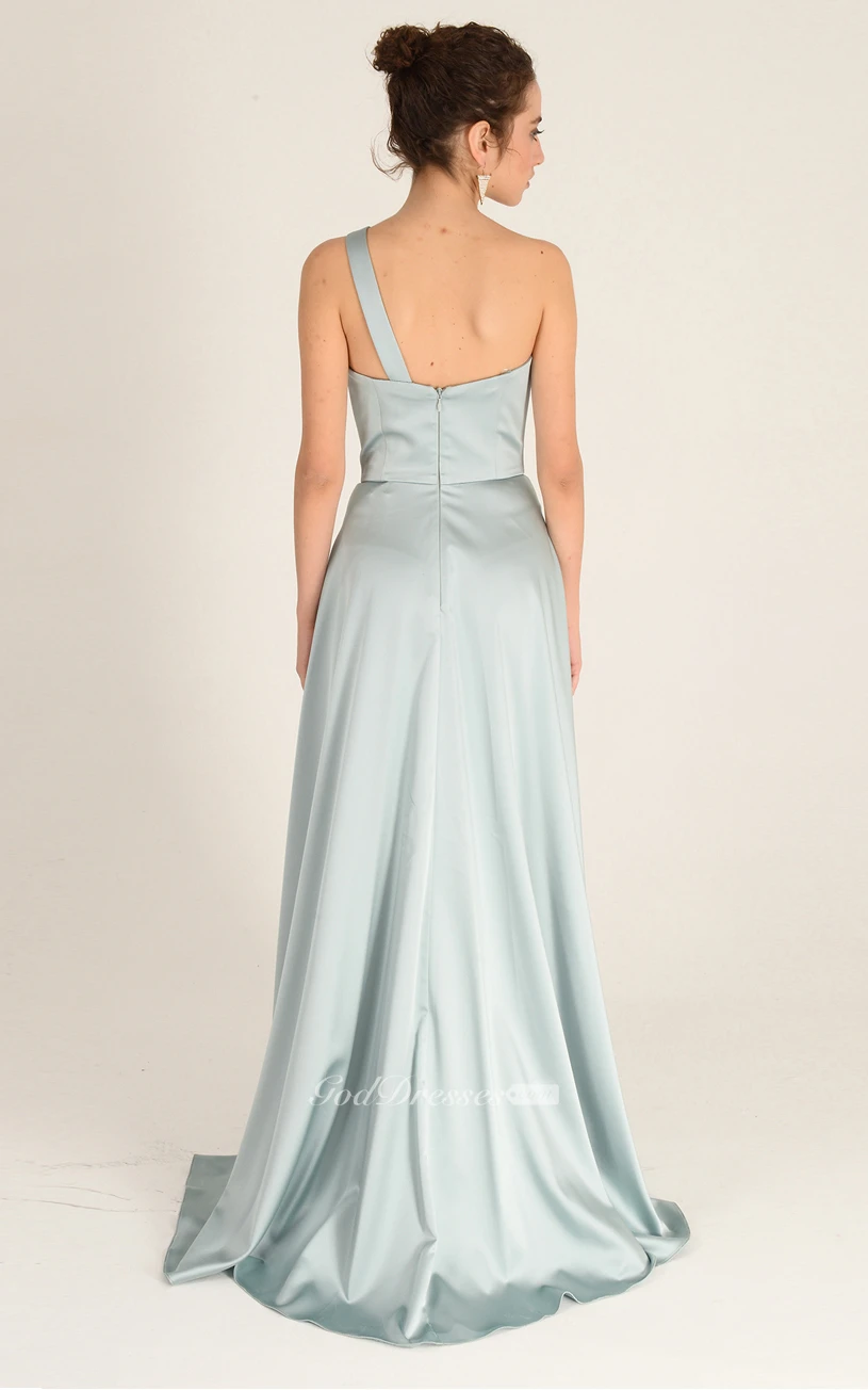 Elegant Floor-length Sleeveless Satin A Line Zipper Prom Dress with Split Front