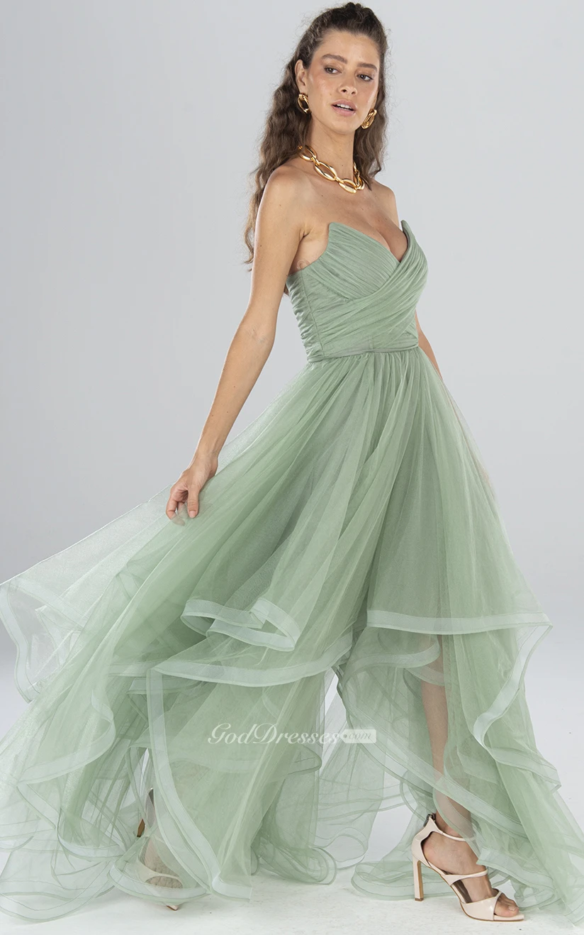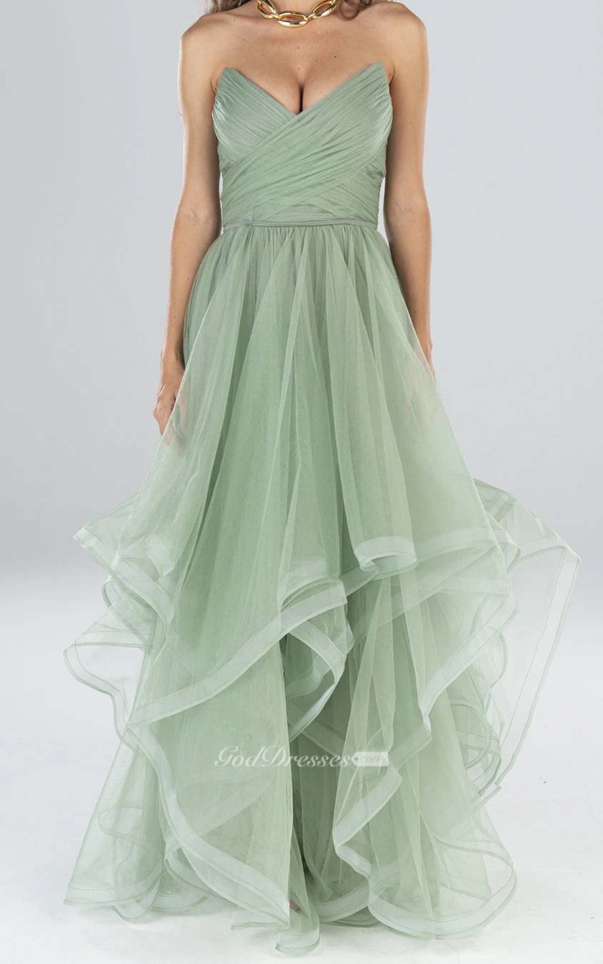 Elegant Floor-length Sleeveless Tulle A Line Open Back Formal Dress with Tiers
