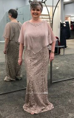 Elegant Half Sleeve Brush Train Sequins Sheath Mother of the Bride Dress