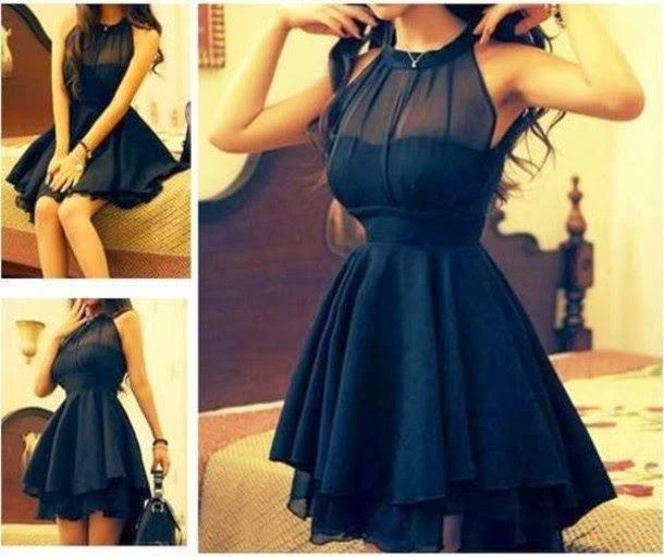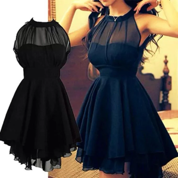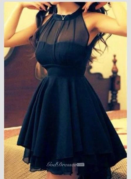 Elegant High Neck Chiffon Summer Homecoming Dress