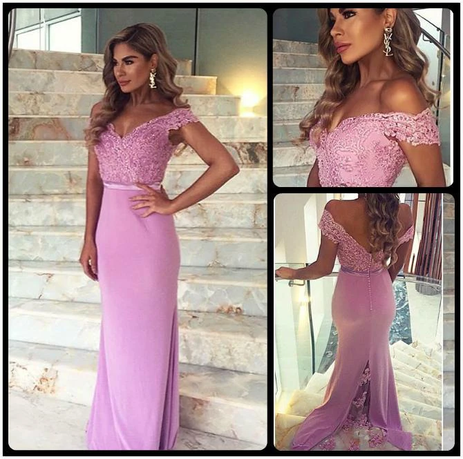 Elegant Lace Appliques Mermaid Prom Dress Off-the-shoulder Sweep Train