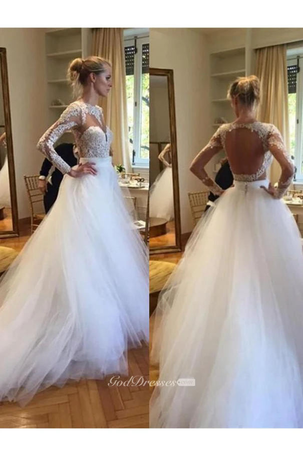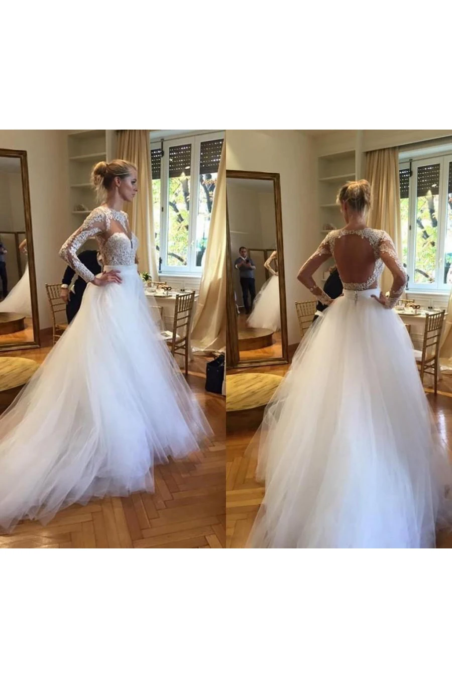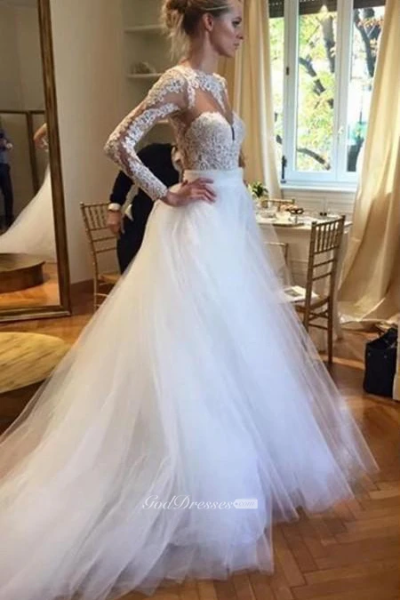 Elegant Long Sleeve Designer Lace Wedding Dresses Tulle Lace Bridal Gowns