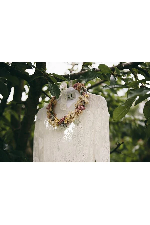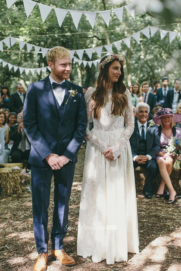Elegant Long Sleeve Halter Wedding Dress Lace Open Back